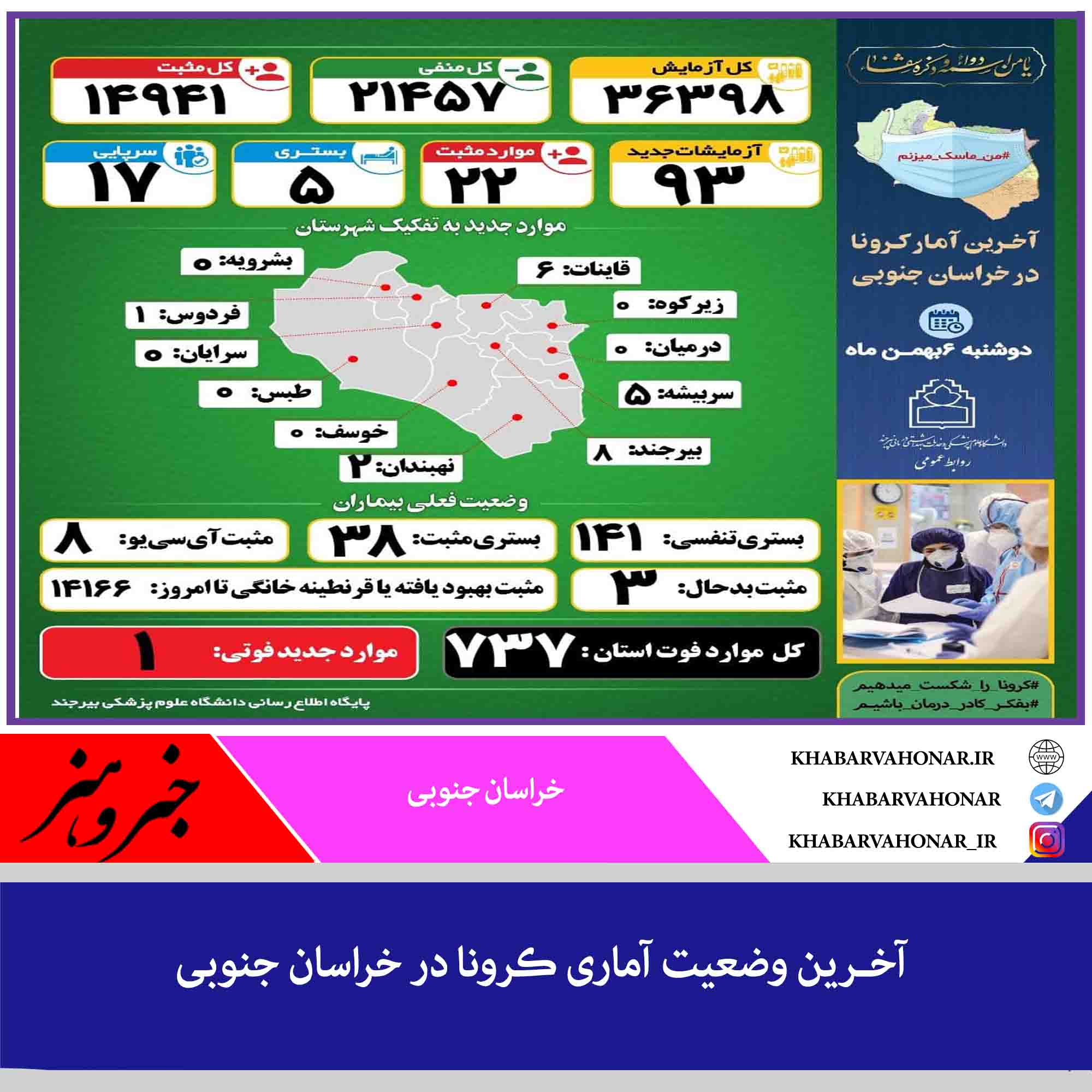 آخـرین وضعیت آماری ڪرونا در خراسان جنوبی
