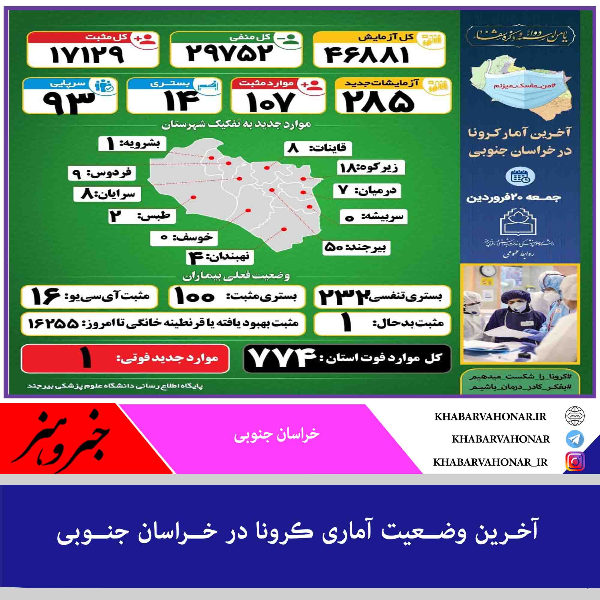 آخـرین وضــعیت آماری ڪرونا در خــراسان جنــوبی