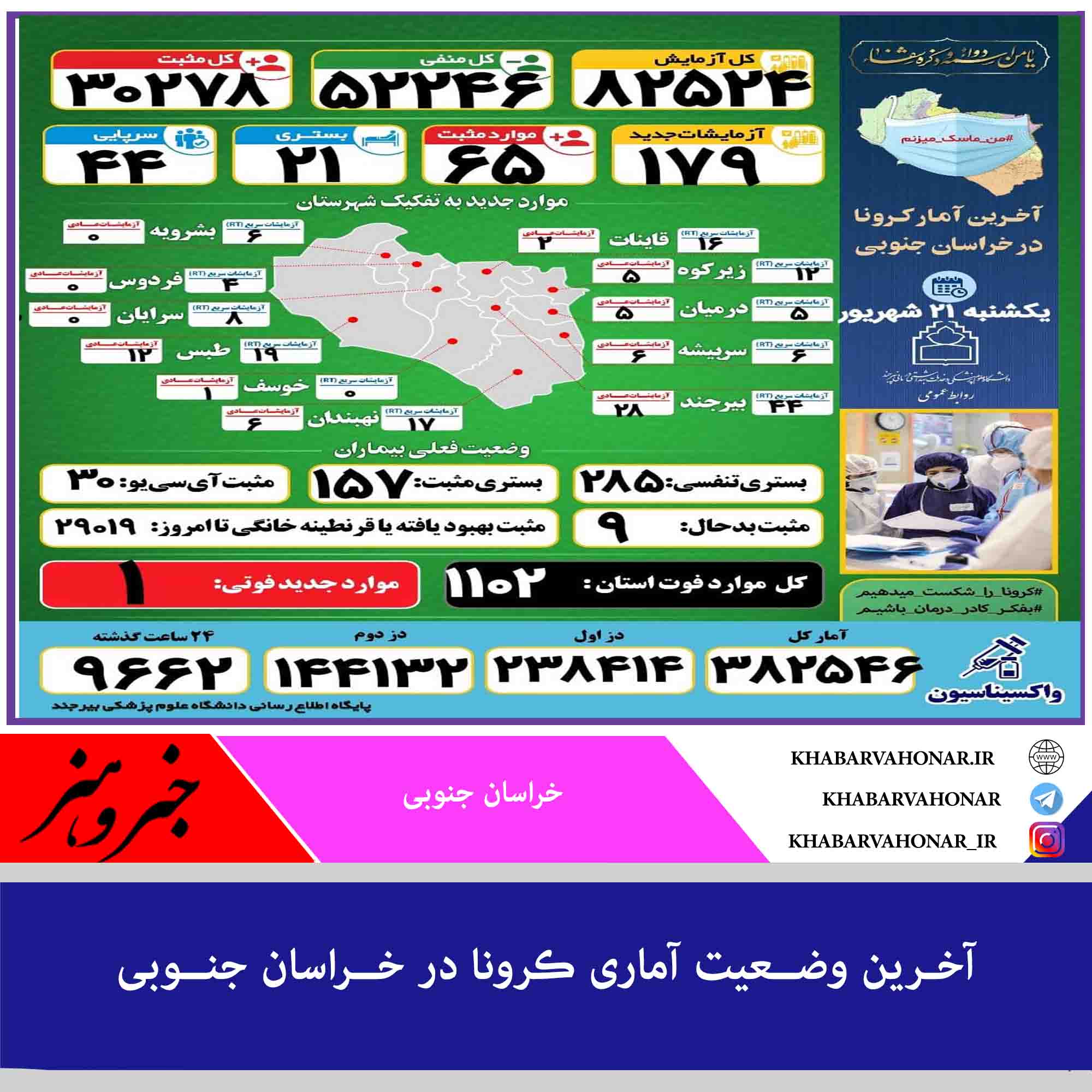 آخـرین وضــعیت آماری ڪرونا در خــراسان جنــوبی