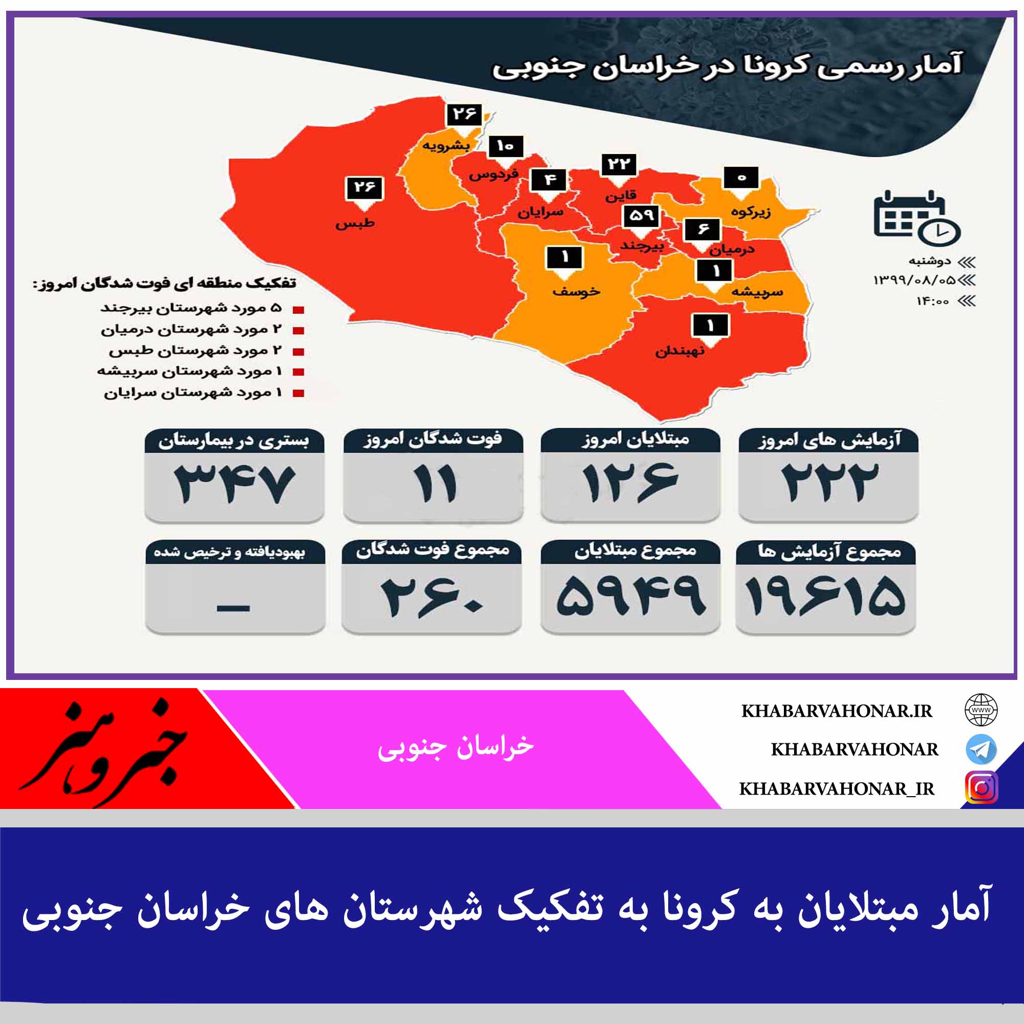 ?شناسایی ۱۲۶ بیمار جدید کرونا در خراسان جنوبی