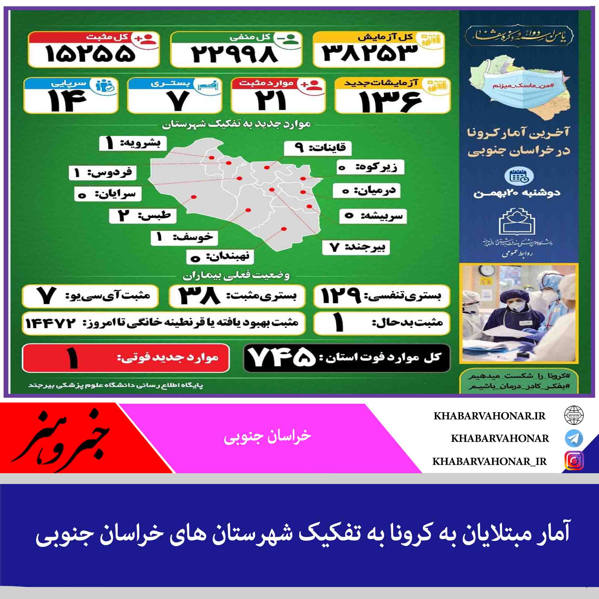 آمار مبتلایان به کرونا به تفکیک شهرستان های خراسان جنوبی