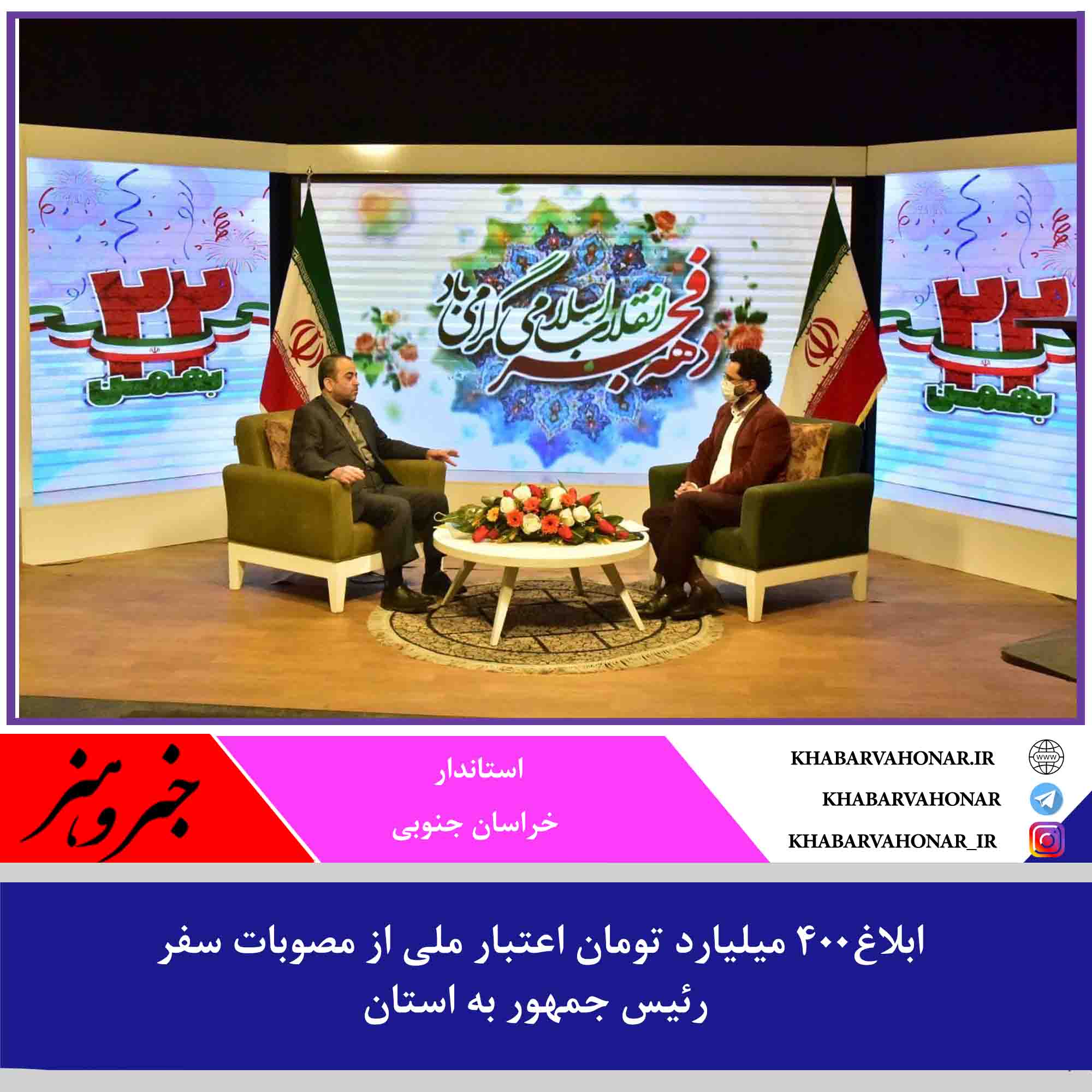?استاندار در برنامه زنده تلویزیونی انقلاب مردم از شبکه خاوران با بیان اینکه سومین سفر استانی رئیس جمهور به خراسان جنوبی بوده است گفت: تاکنون ۴۰۰ میلیارد تومان اعتبار از مصوبات سفر رئیس جمهور به استان ابلاغ شده و ۲۷۵ میلیارد تومان دیگر نیز به زودی به استان ابلاغ می شود.