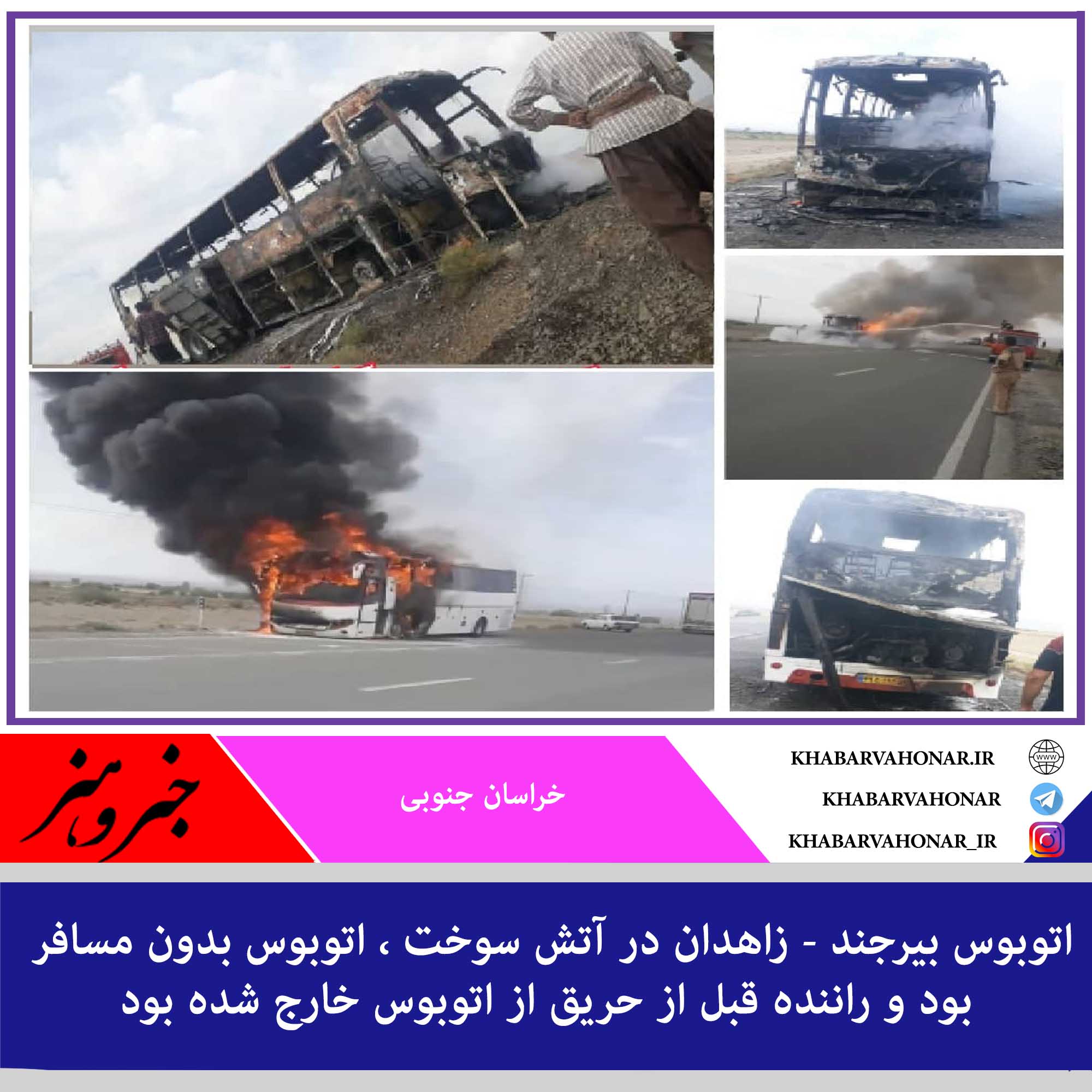 اتوبوس بیرجند – زاهدان در آتش سوخت
