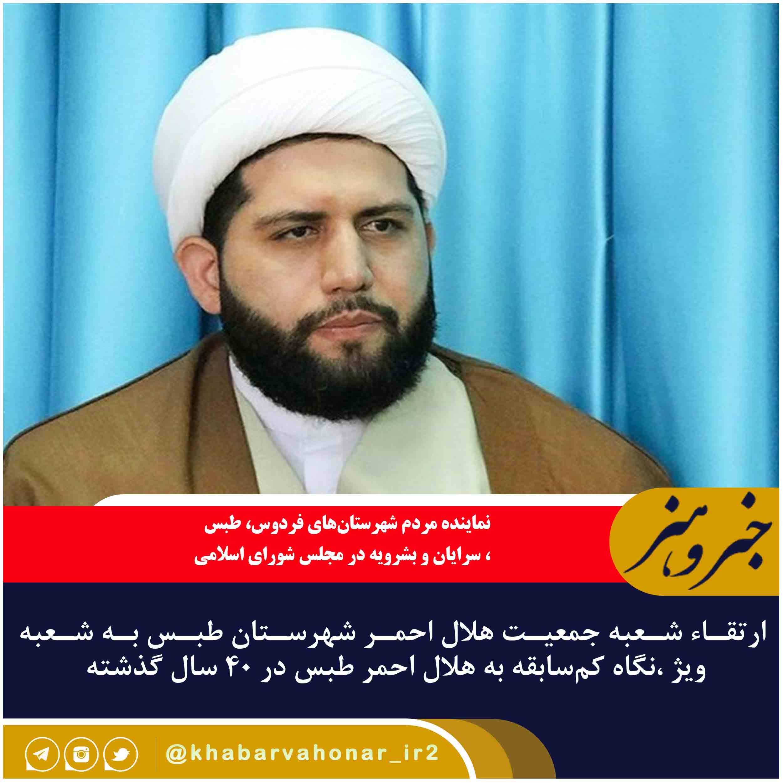 نماینده مردم فردوس، طبس، سرایان و بشرویه در مجلس شورای اسلامی و عضو شورای اجرایی جمعیت هلال احمر شهرستان طبس در دیدار با رئیس هلال احمر طبس گفت: سه موضوع اصلاح ساختار اداری و تعیین جایگاه حقیقی شعبه ویژه طبس پس از آنکه ارتقاء یافته و نیاز به تشکیلات جدید دارد، تسریع در راه اندازی نمایندگیهای دستگردان و دیهوک و احداث پایگاه بین المللی امداد و نجات حوزه معادن شهرستان از جمله مواردی است که در تهران پیگیر هستم و شورای اجرایی هم در صحنه پیگیریها باشند.
