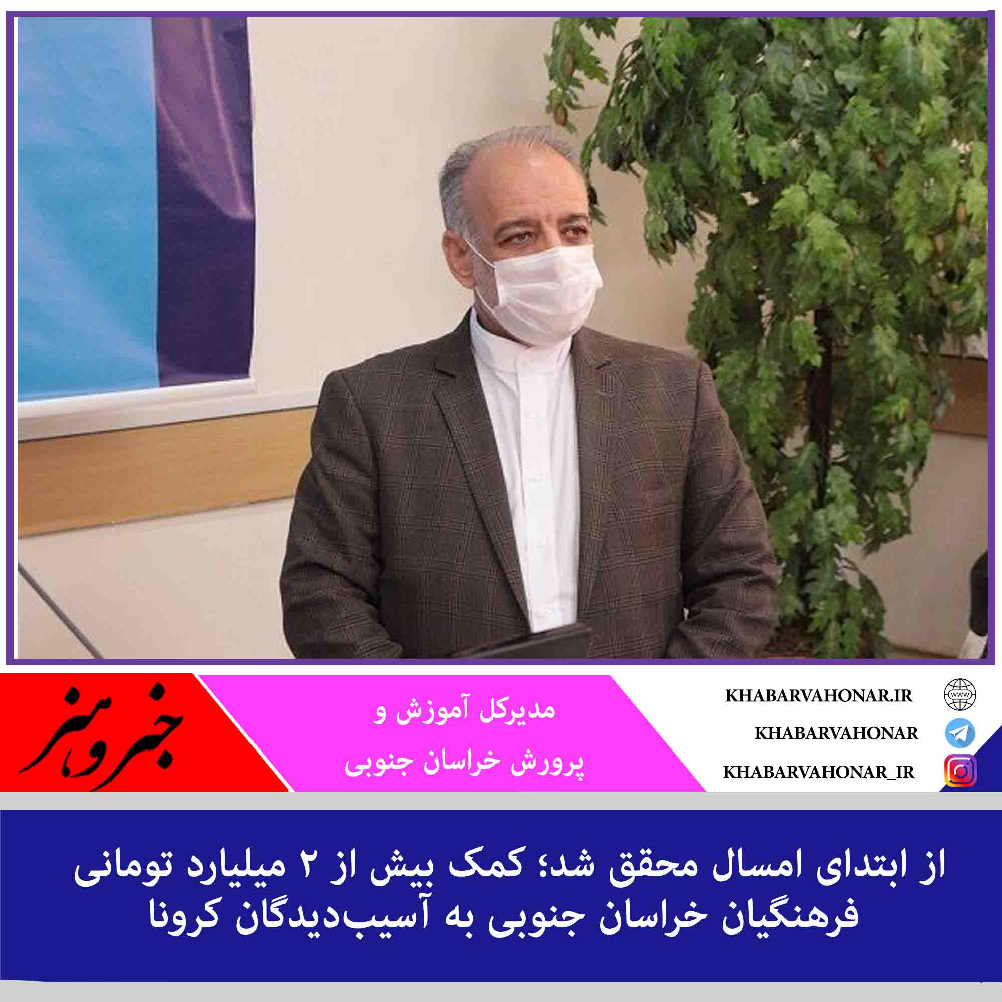 مدیرکل آموزش و پرورش خراسان جنوبی گفت: فرهنگیان و دانشآموزان استان از ابتدای سال جاری و در قالب کمکهای مومنانه، بیش از ۲۵ هزار و ۸۰۰ بسته معیشتی، غذای گرم، البسه و نوشت افزار را به ارزش ۲ میلیارد و ۳۴۱ میلیون و یکصد هزار تومان به خانواده دانشآموزان آسیب دیده از کرونا کمک کردهاند.