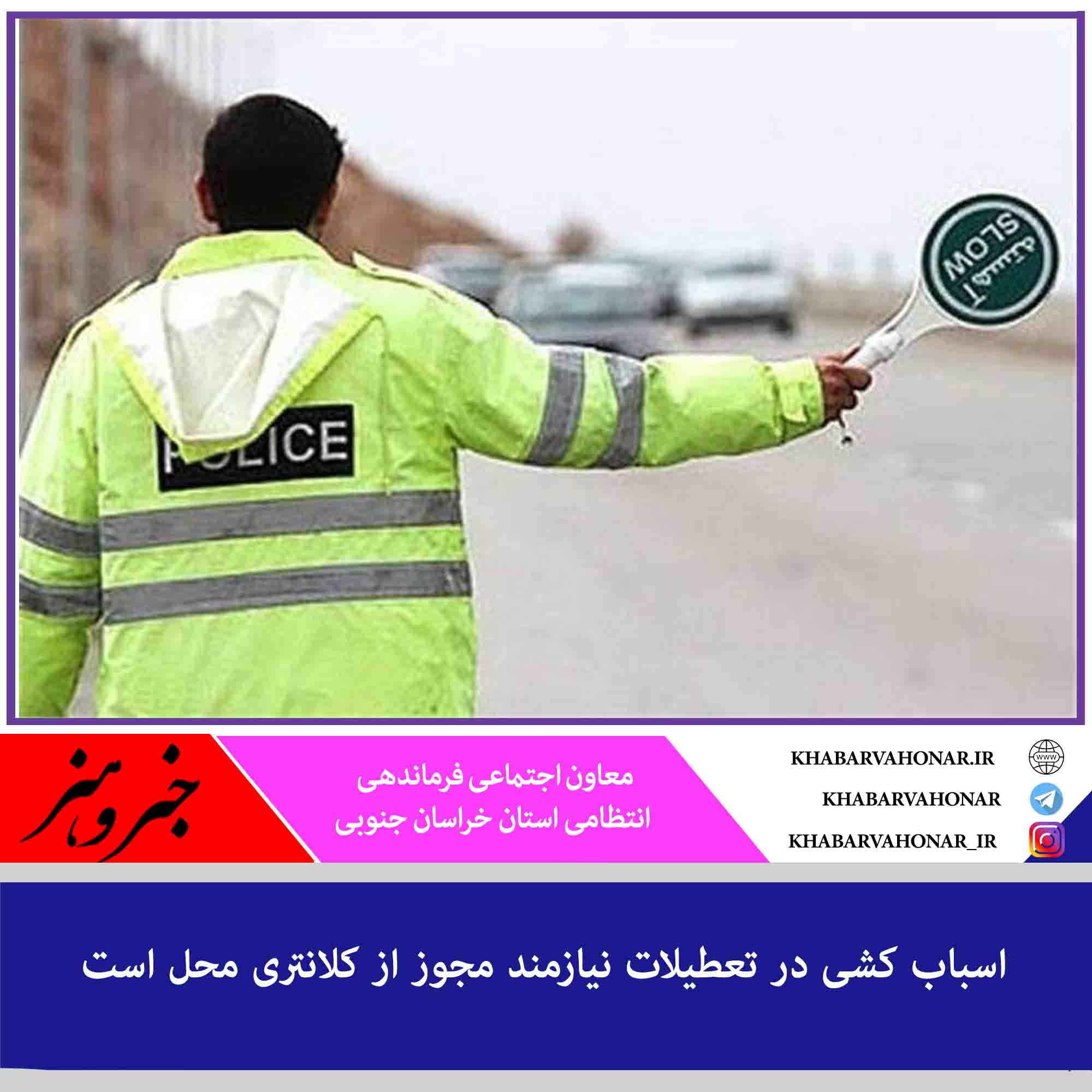معاون اجتماعی فرماندهی انتظامی استان خراسان جنوبی گفت: اسباب کشی و جابهجایی وسایل و حمل اثاثیه منزل در روزهای پایانی سال و تعطیلات نوروزی، نیازمند هماهنگی و اخذ مجوز از کلانتری محل است.