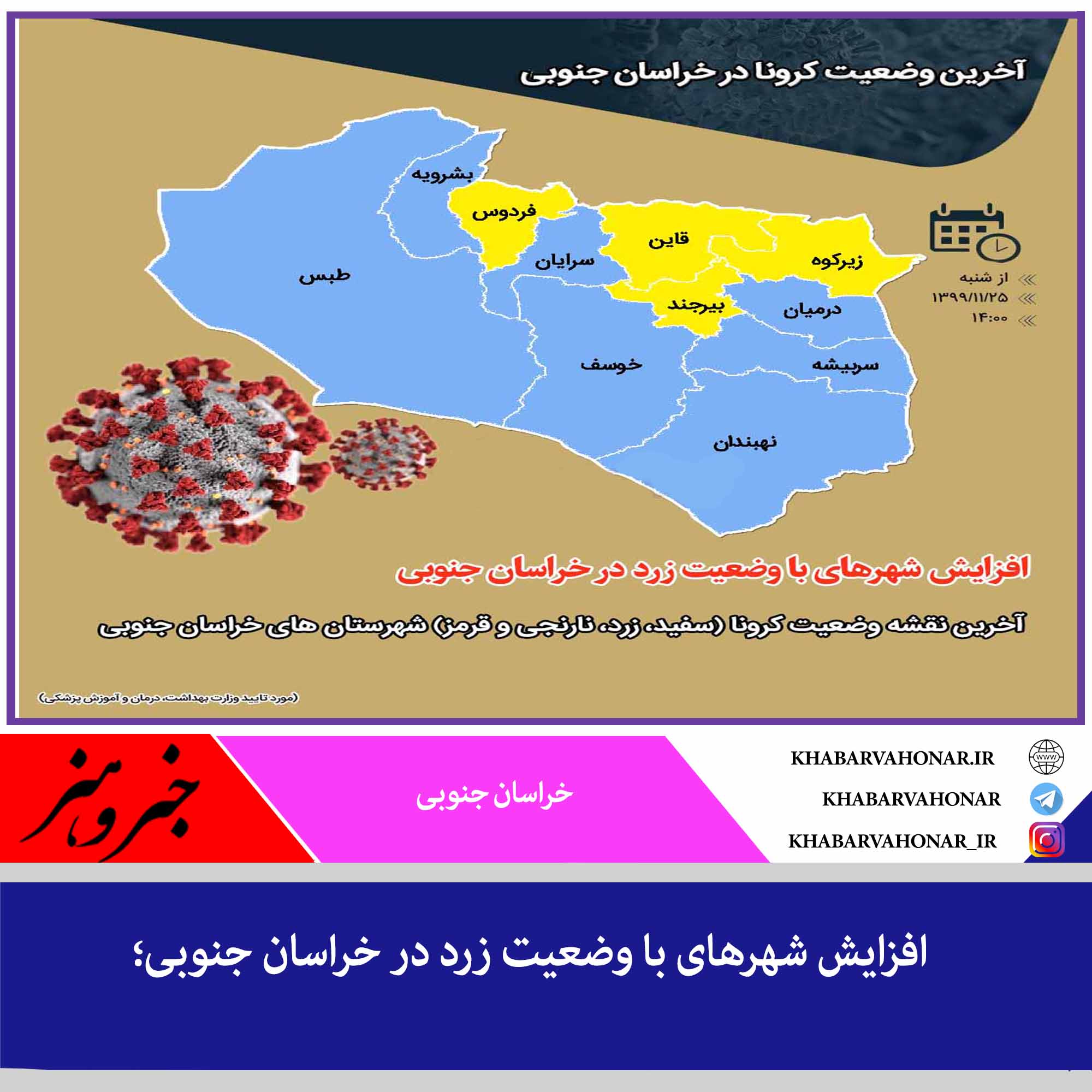 ?آخرین نقشه وضعیت کرونا (سفید، زرد، نارنجی و قرمز) شهرستان های خراسان جنوبی (مورد تایید وزارت بهداشت، درمان و آموزش پزشکی) (بروز رسانی از ۲۵بهمن ماه ۱۳۹۹)