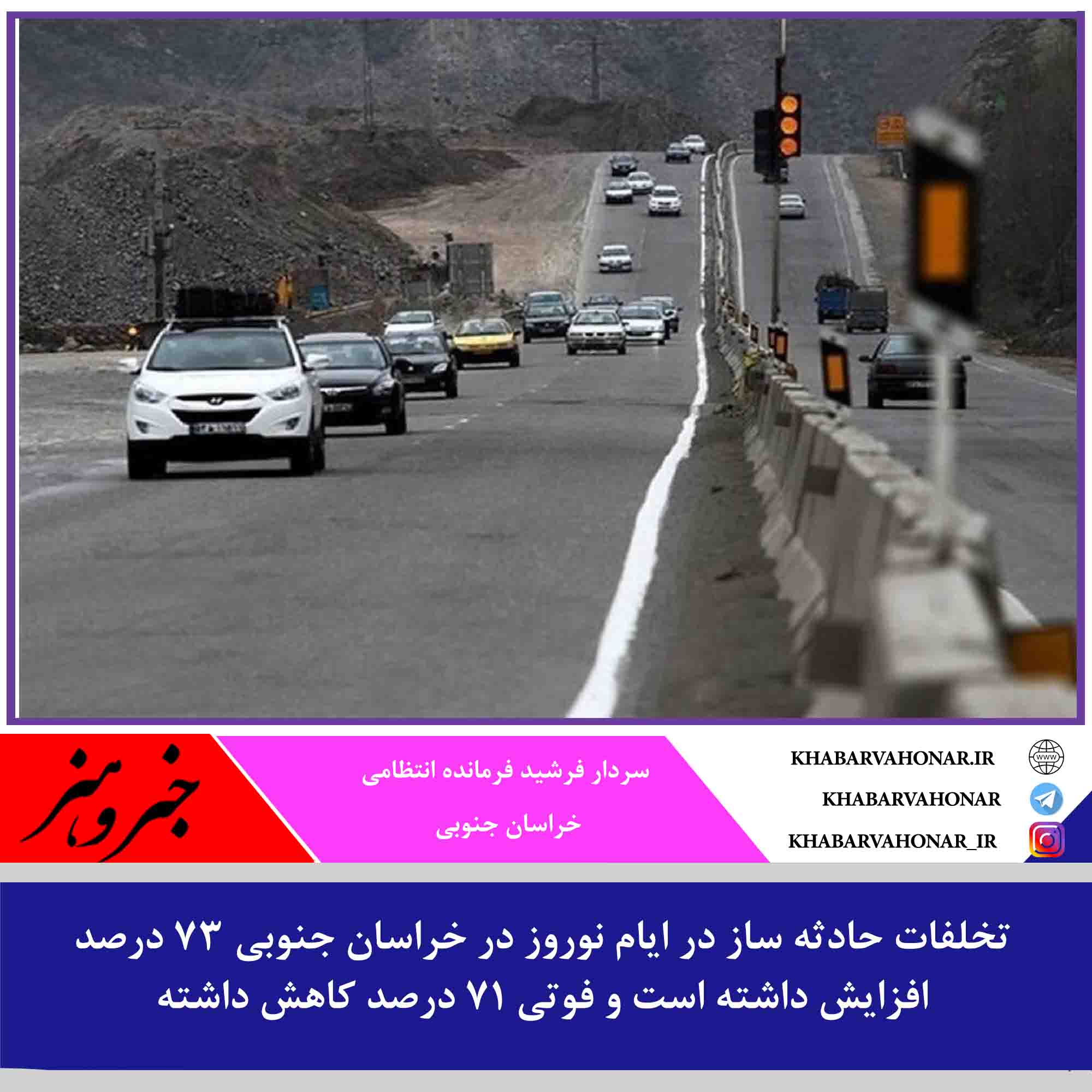 تخلفات حادثه ساز در ایام نوروز در خراسان جنوبی ۷۳ درصد افزایش داشته است.