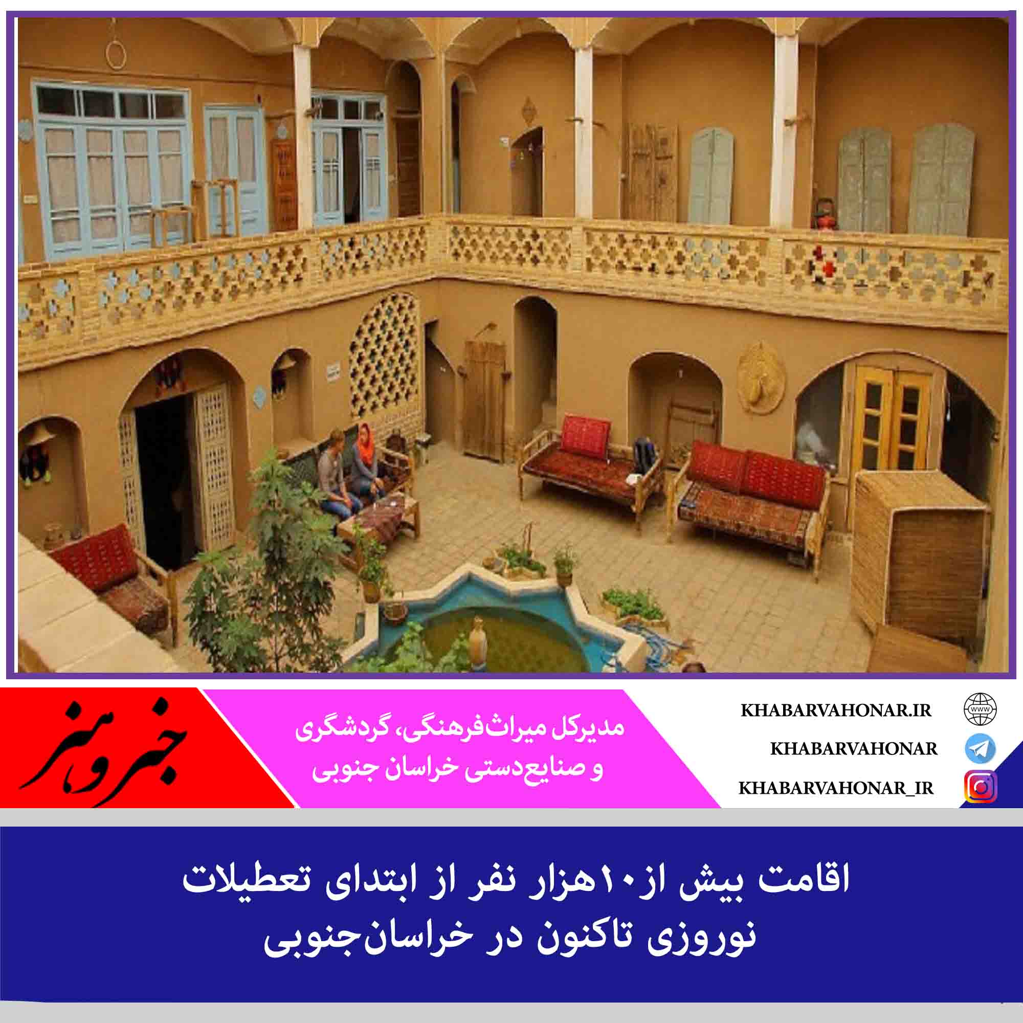 روزانه و ثبت آمار اقامت در تاسیسات اقامتی از تاریخ ۲۸ اسفند تا کنون مجموعا ۱۰هزار ۱۰۷نفر در استان اقامت کردهاند.