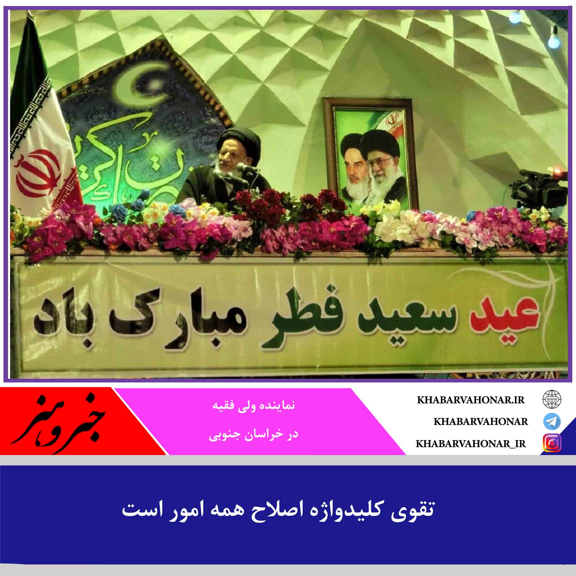 نماینده ولی فقیه در خراسان جنوبی و امام جمعه بیرجند گفت: امروز فرصت برای همه ما مهیا شده تا خود را اصلاح کرده و به تقوی برگردیم چون تقوی تنها راه ذخیره آخرت و کلیدواژه اصلاح همه امور است.