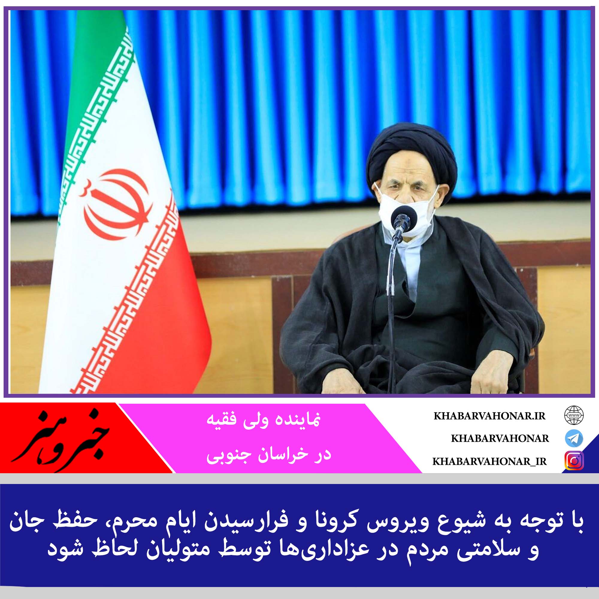 نماینده ولی فقیه در خراسان جنوبی و امام جمعه بیرجند گفت: با توجه به شیوع ویروس کرونا و فرارسیدن ایام محرم، حفظ جان و سلامتی مردم در عزاداریها توسط متولیان لحاظ شود.