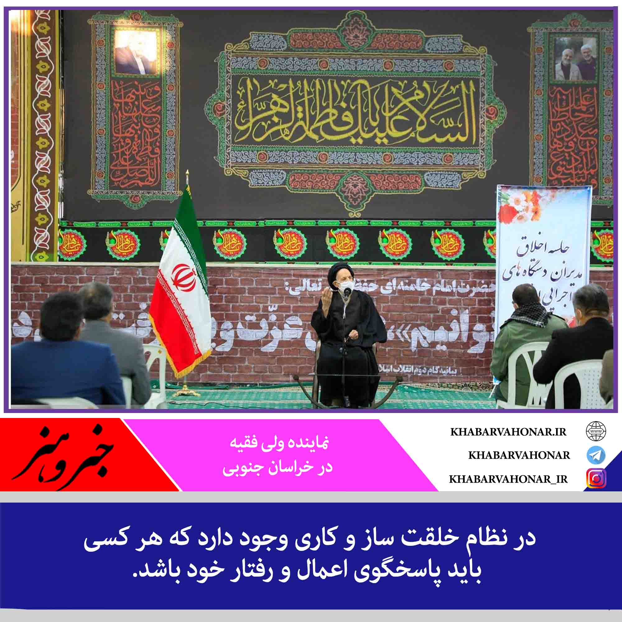 نماینده ولی فقیه در خراسان جنوبی و امام جمعه بیرجند گفت: در نظام خلقت ساز و کاری وجود دارد که هر کسی باید پاسخگوی اعمال و رفتار خود باشد.