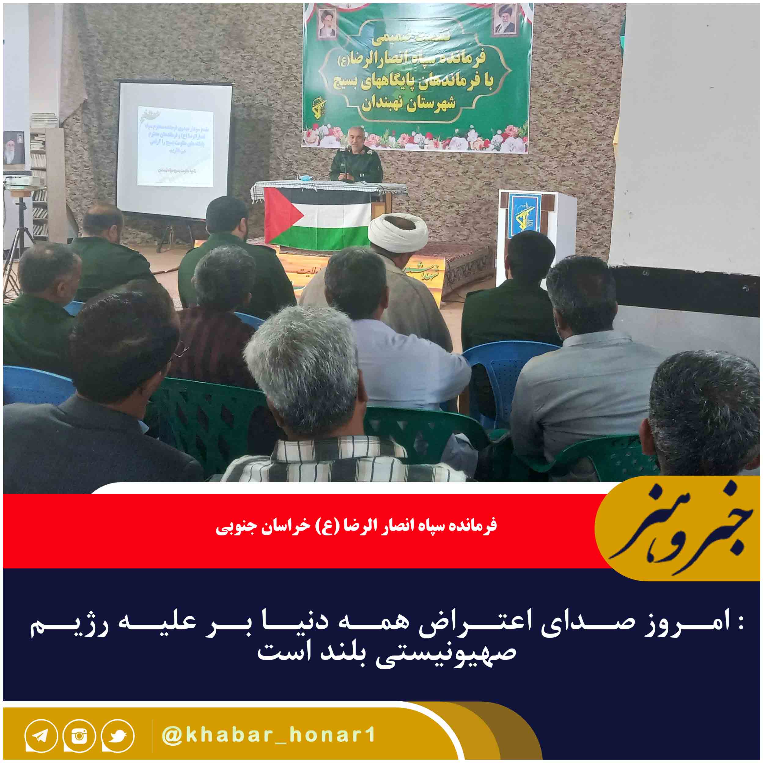 فرمانده سپاه انصار الرضا (ع) خراسان جنوبی با بیان اینکه بساط رژیم صهیونیستی به زودی برچیده می‌شود گفت: امروز صدای اعتراض همه دنیا بر علیه رژیم صهیونیستی بلند است