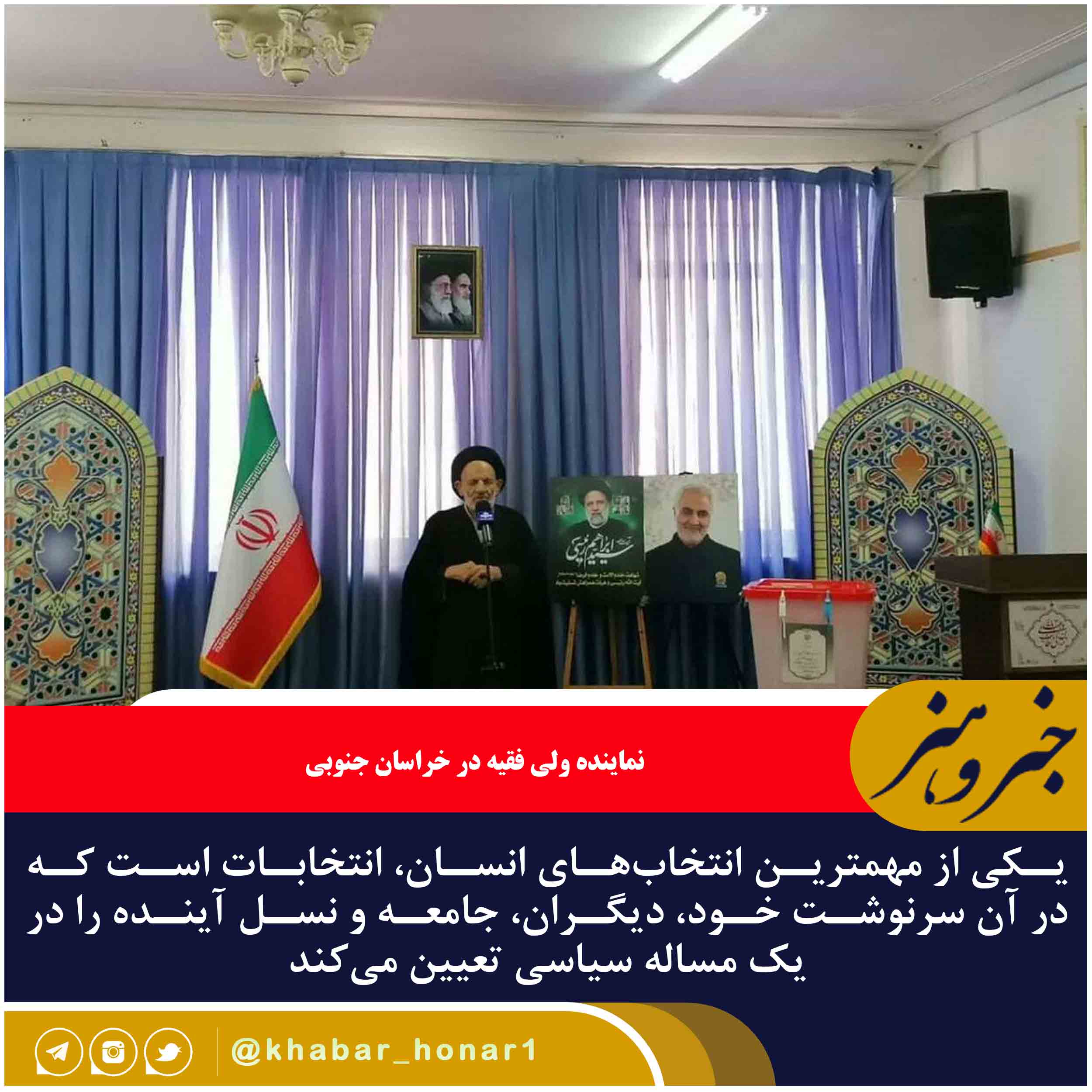 نماینده ولی فقیه در خراسان جنوبی و امام جمعه بیرجند گفت: یکی از مهمترین انتخابهای انسان، انتخابات است که در آن سرنوشت خود، دیگران، جامعه و نسل آینده را در یک مساله سیاسی تعیین میکند.