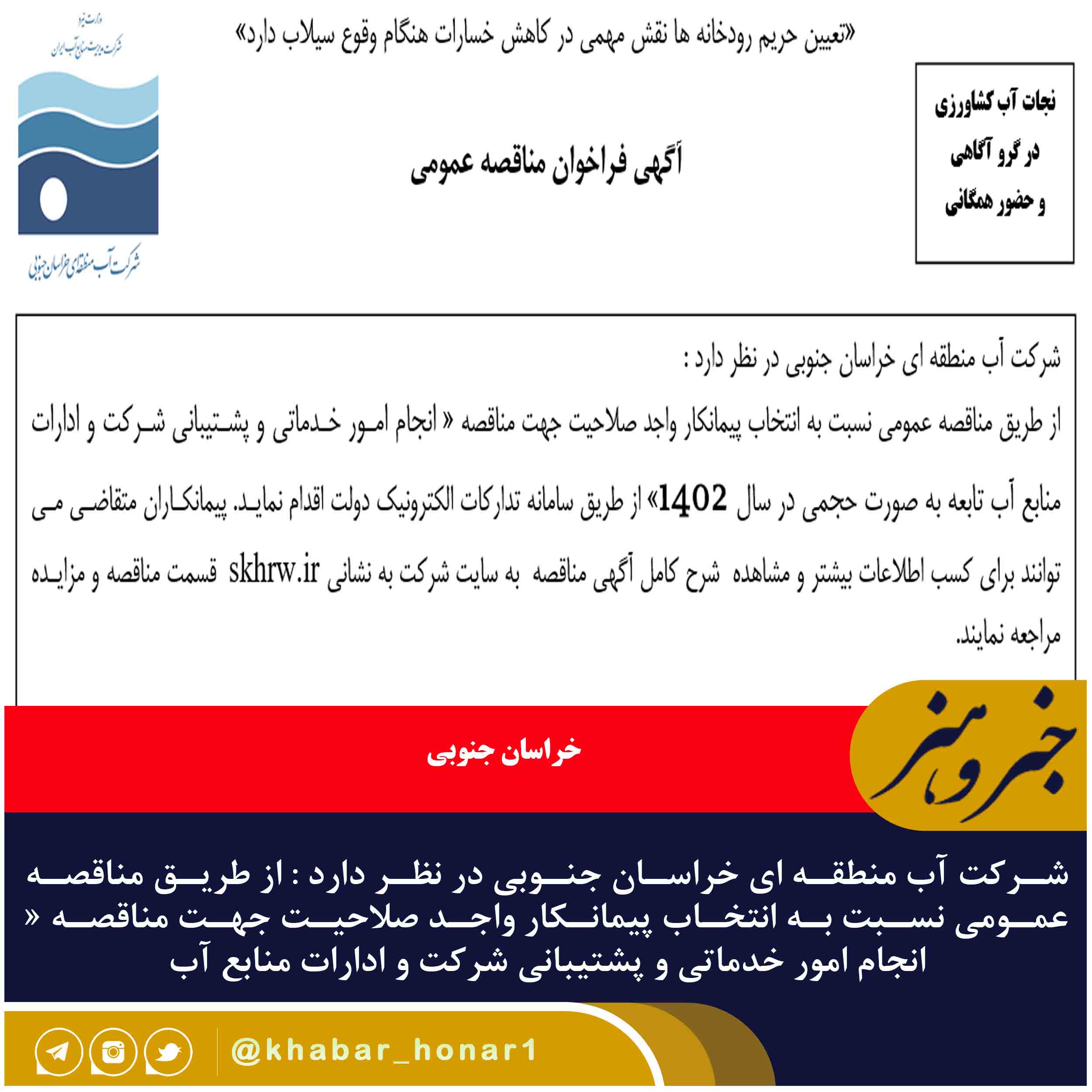 شرکت آب منطقه ای خراسان جنوبی در نظر دارد :