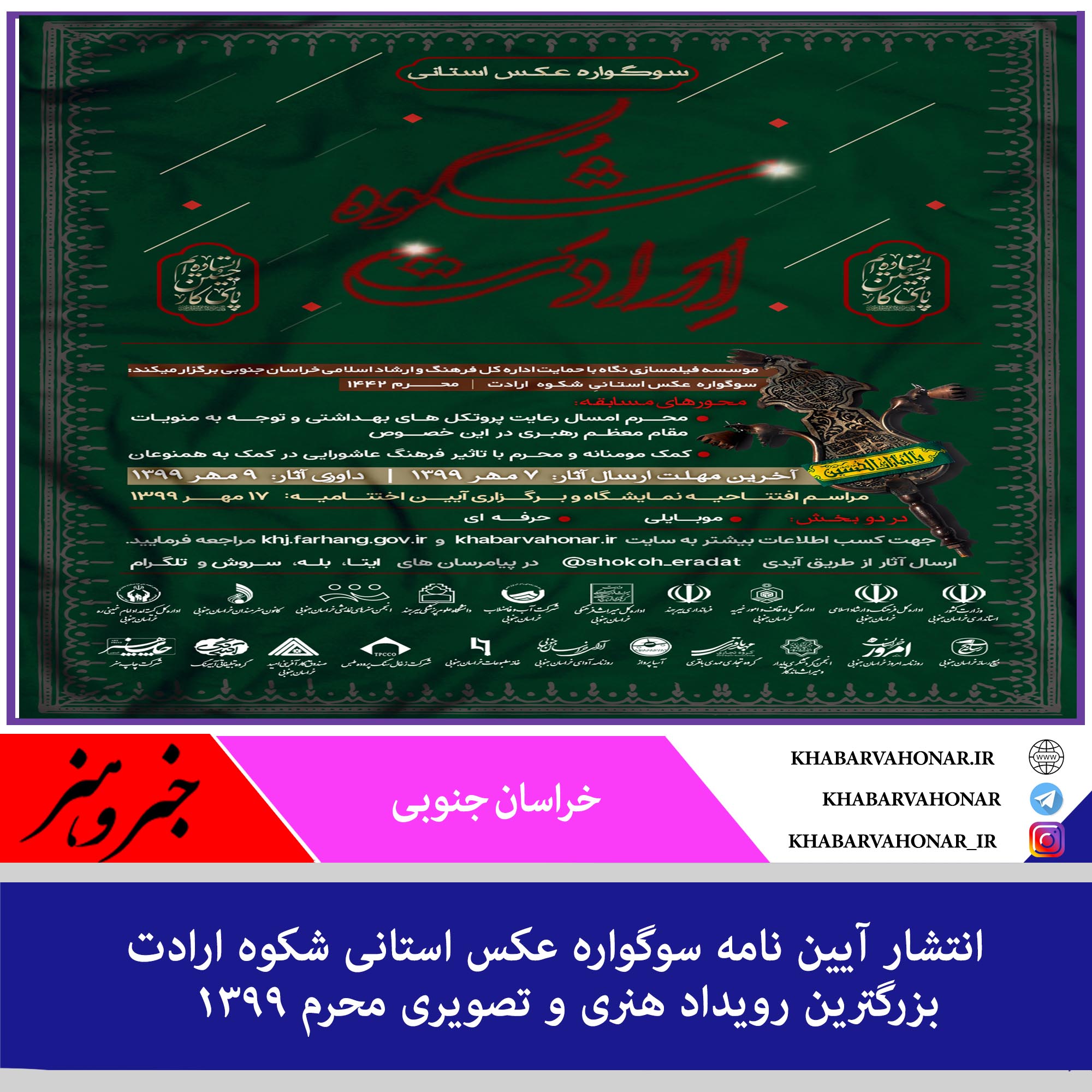 امسال با وجود ویروس کرونا در کشور و نظر مقام معظم رهبری مدظله العالی محرم به صورت متفاوت و با شور و اشتیاق بیشتر برگزار خواهد شد تا به تمام جهانیان ثابت شود عشق به امام حسین(ع) چه در عزاداری ها و چه سیره عملی راه سید الشهدا (ع) خاموشی نداره و این شور اشتیاق می بایست برای ثبت و ضبط در تاریخ به تصویر کشیده شود این امر در هنر عکاسی متبلور است هنری دیداری مستند و واقعیت گرا و در عین حال حقیقت گو که می توان این روزها را برای آینده گان به یادگار گذاشت از آنجاییکه عکاسی در حال توسعه است هنرمندان بیشماری در خراسان جنوبی به این هنر مبادرت می ورزند و عامه مردم نیز در پس تغییرات در گوشی ها هوشمند در این وادی گام نهاده اند و لحظات ناب را به تصویر می کشند . پس می شود فرهنگ اصیل عاشواریی و انقلابی مردم خراسان جنوبی با تاسی از منویات مقام عظمای ولایت امام خامنه ای رهبر انقلاب اسلامی را به تصویر کشید .