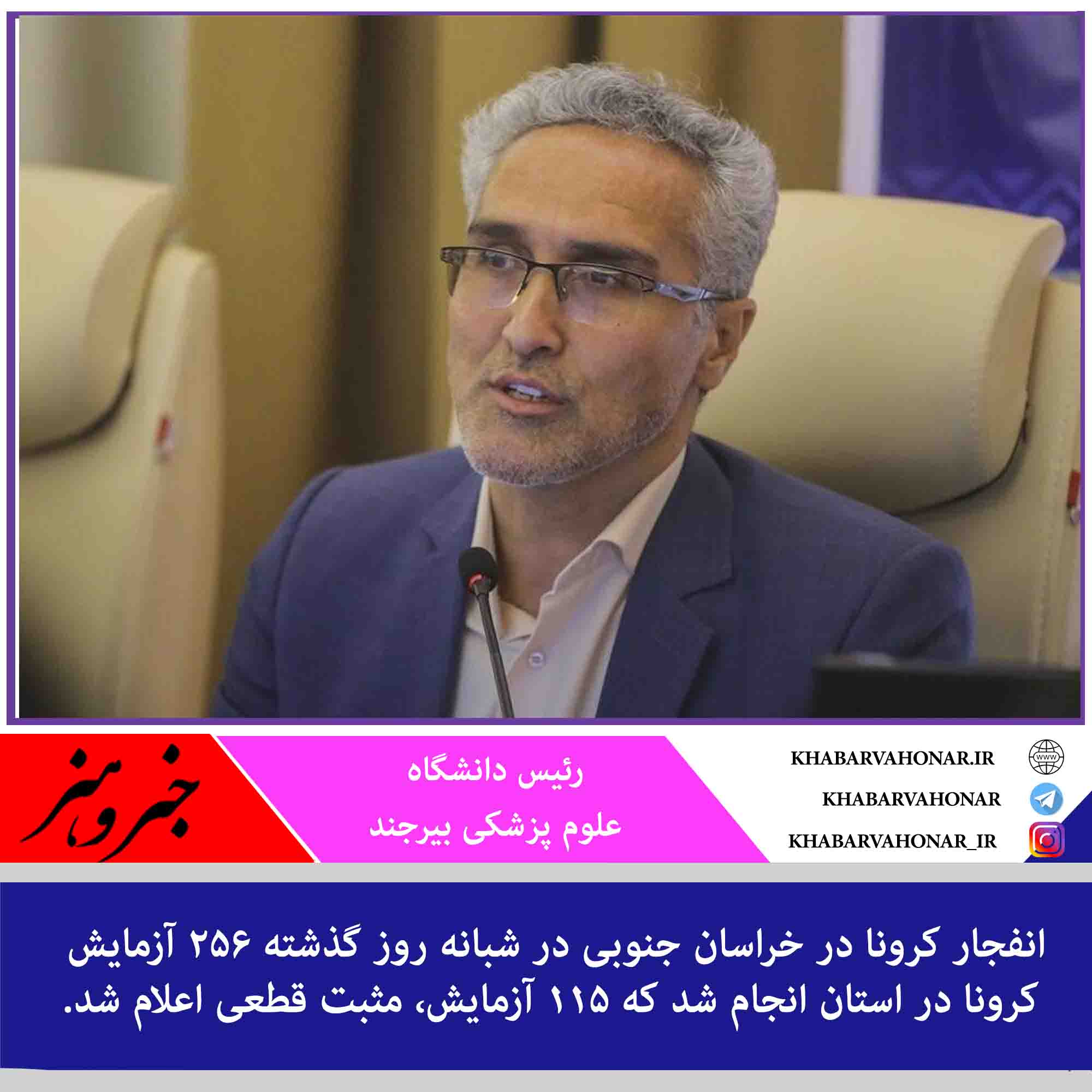 ?رئیس دانشگاه علوم پزشکی بیرجند گفت: در شبانه روز گذشته ۲۵۶ آزمایش کرونا در استان انجام شد که ۱۱۵ آزمایش، مثبت قطعی اعلام شد.