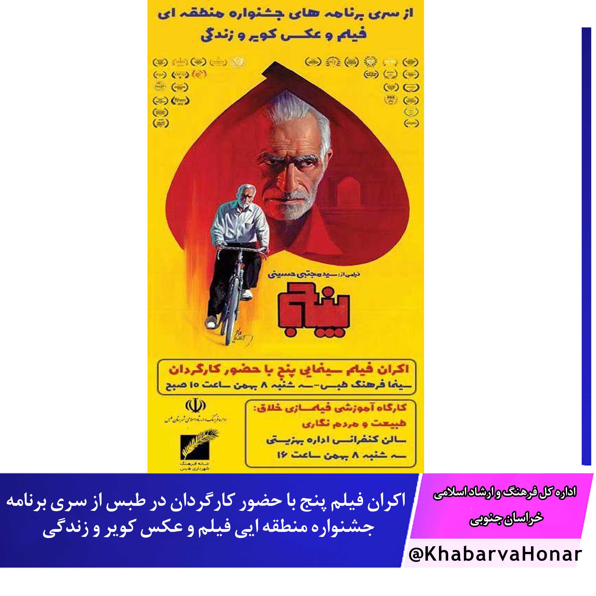 اکران فیلم پنج با حضور کارگردان در طبس از سری برنامه جشنواره منطقه ایی فیلم و عکس کویر و زندگی اداره کل فرهنگ و ارشاد اسلامی خراسان جنوبی