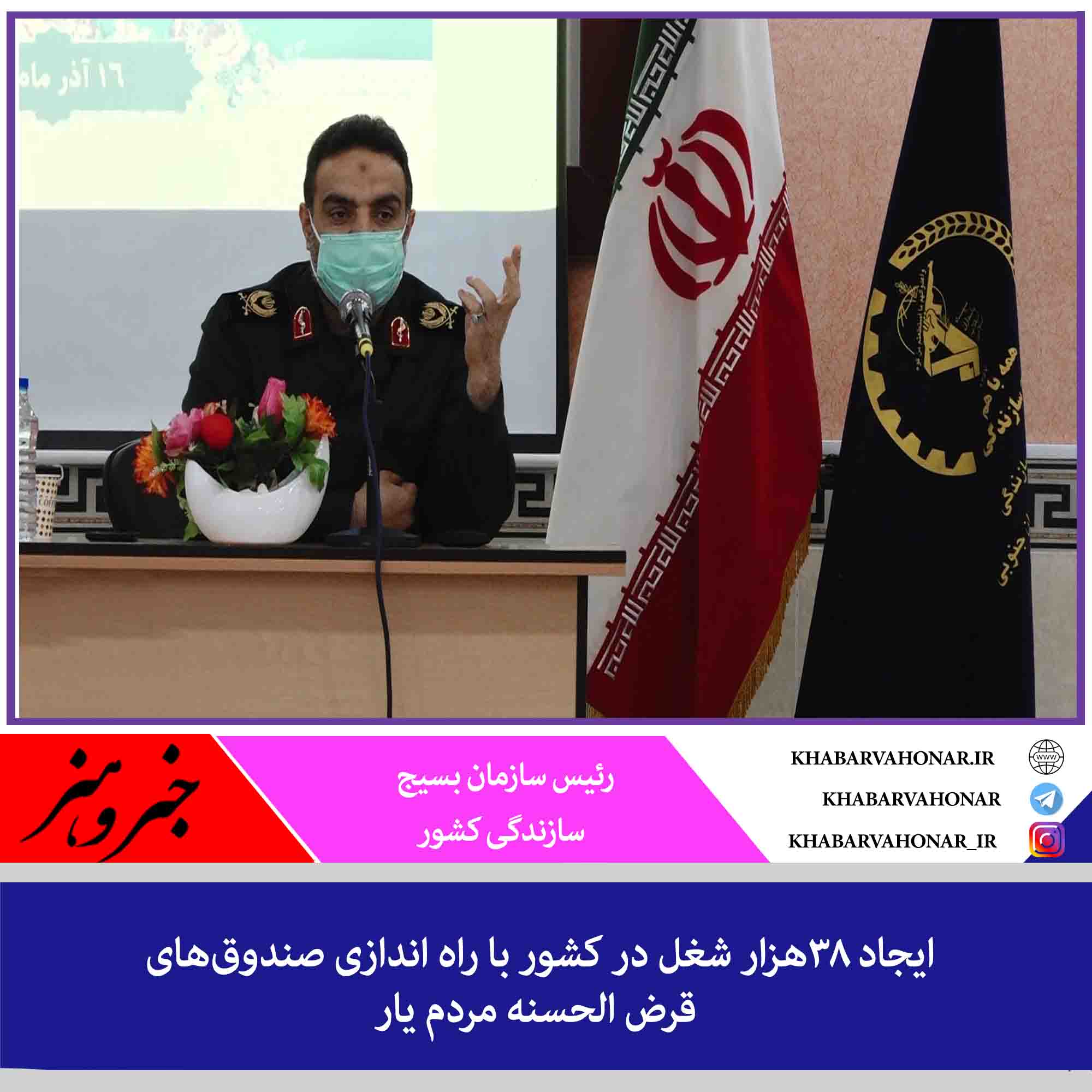 رئیس سازمان بسیج سازندگی کشور: صندوقهای قرض الحسنه مردم یار این نهاد، تاکنون با پرداخت تسهیلات، ۳۸هزار نفر را در کشور صاحب شغل کرده اند.