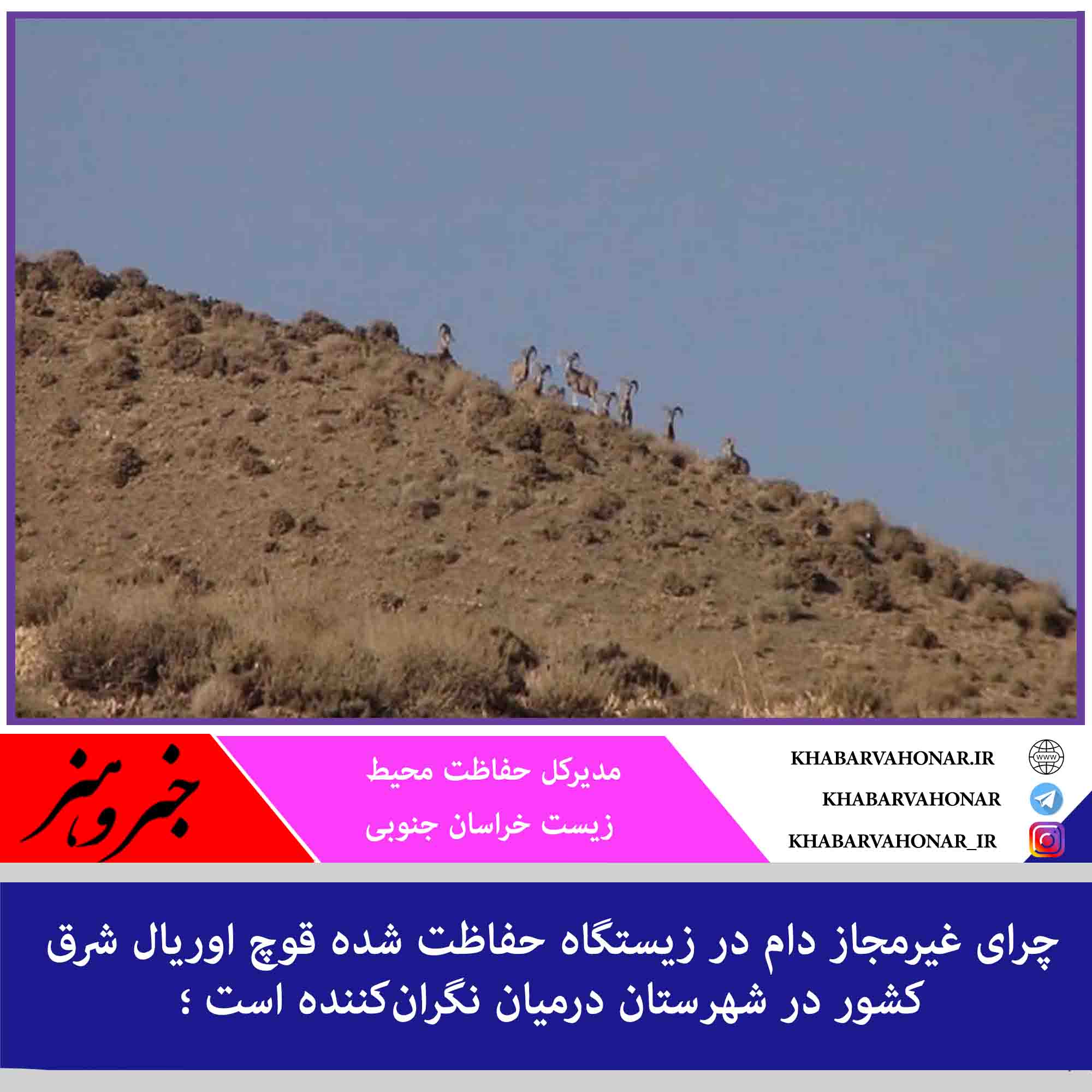 مدیرکل حفاظت محیط زیست خراسان جنوبی با ابراز نگرانی از ورود دامهای غیرمجاز برای تعلیف در منطقه حفاظت شده درمیان سربیشه گفت: منطقه حفاظت شده درمیان سربیشه تنها زیستگاه حفاظت شده قوچ اوریال در شرق کشور طی هفتههای گذشته شاهد حضور تعداد زیادی دام غیرمجاز بوده است که اگر مسوولان برای چالش بوجود آمده در منطقه چارهاندیشی نکنند لطمات سنگینی به منطقه وارد خواهد شد و مردم محلی حاشیه منطقه نیز متضرر خواهند شد.