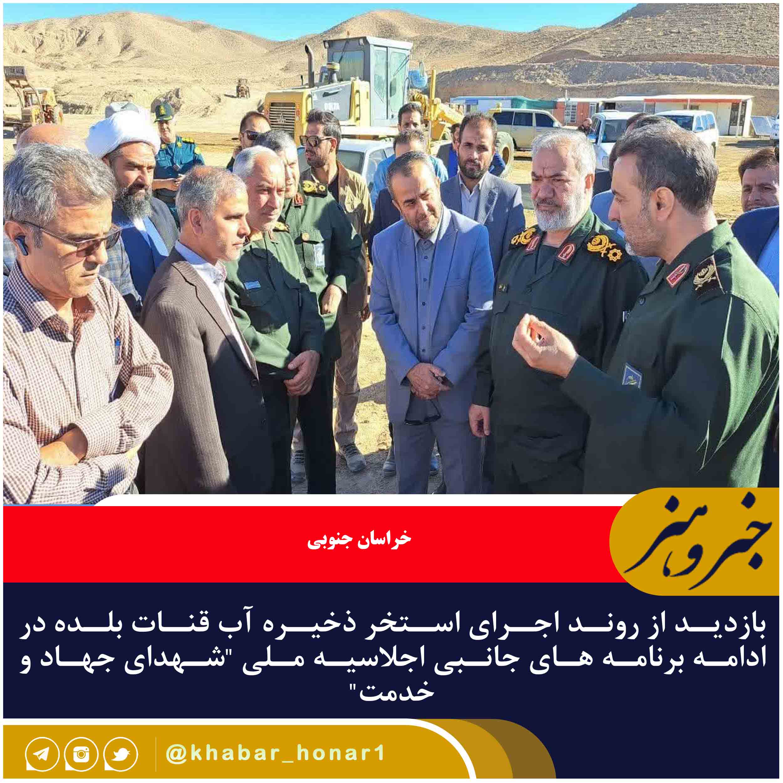 🔹استاندار خراسان جنوبی و جانشین فرمانده کل سپاه از روند اجرای استخر ذخیره آب قنات بلده بازدید کردند.