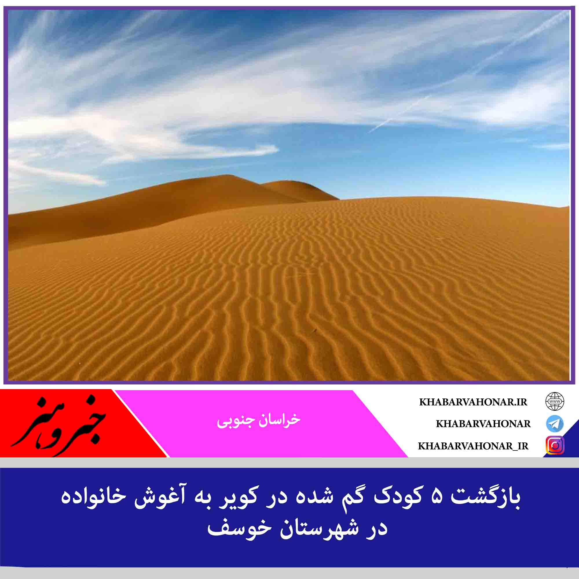 بازگشت ۵ کودک گم شده در کویر به آغوش خانواده