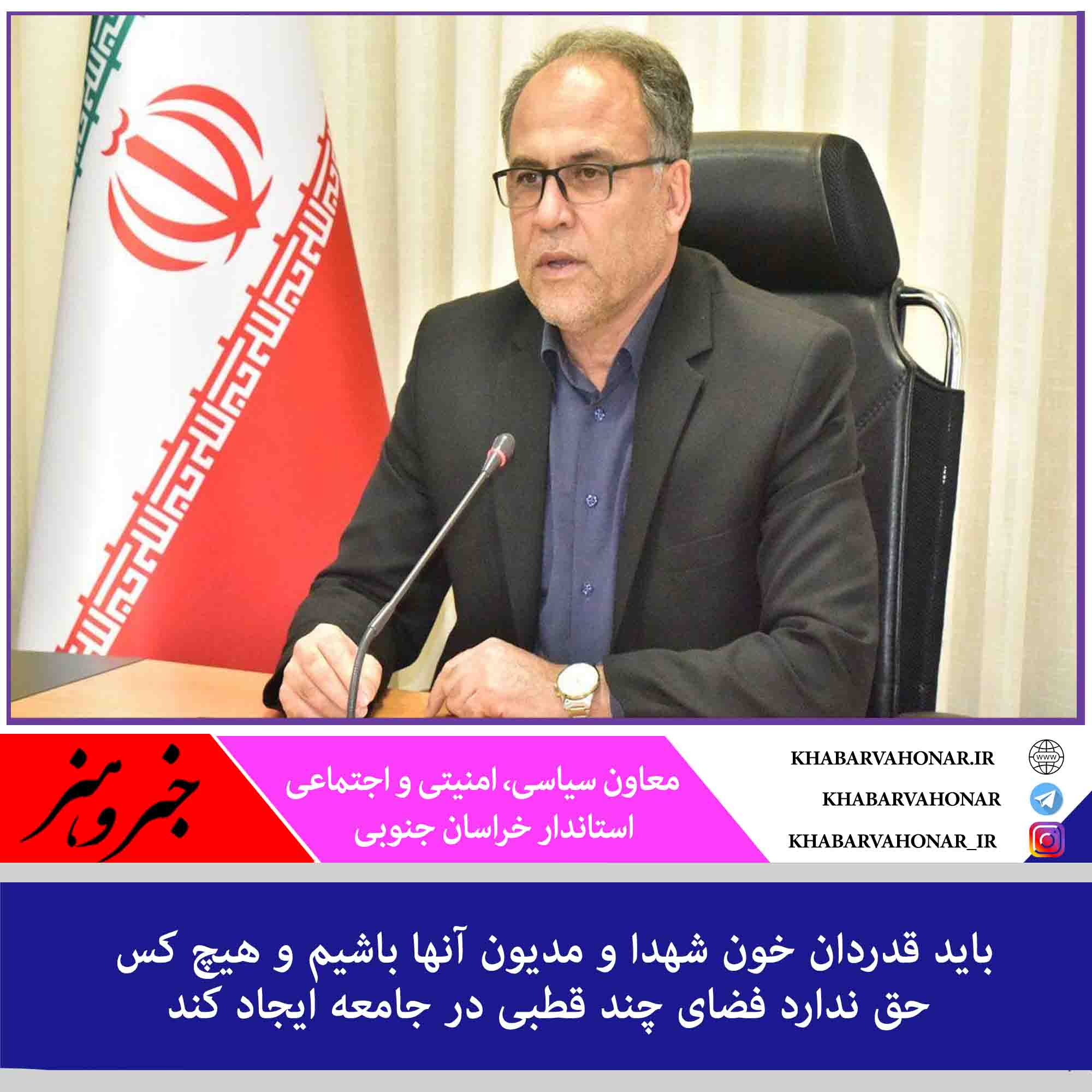 وی تاکید کرد: باید قدردان خون شهدا و مدیون آنها باشیم و هیچ کس حق ندارد فضای چند قطبی در جامعه ایجاد کند.