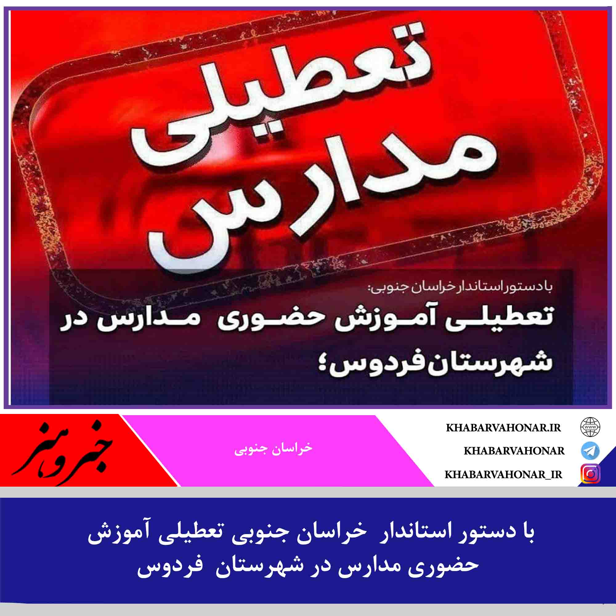 ?با توجه به شیوع گسترده سویه ی اُمیکرون در شهرستان فردوس، به اطلاع می رساند با پیشنهاد ستاد کرونای شهرستان فردوس و دستور استاندار خراسان جنوبی، تا پایان هفته آموزش در تمامی مدارس شهرستان فردوس به صورت مجازی انجام می شود.