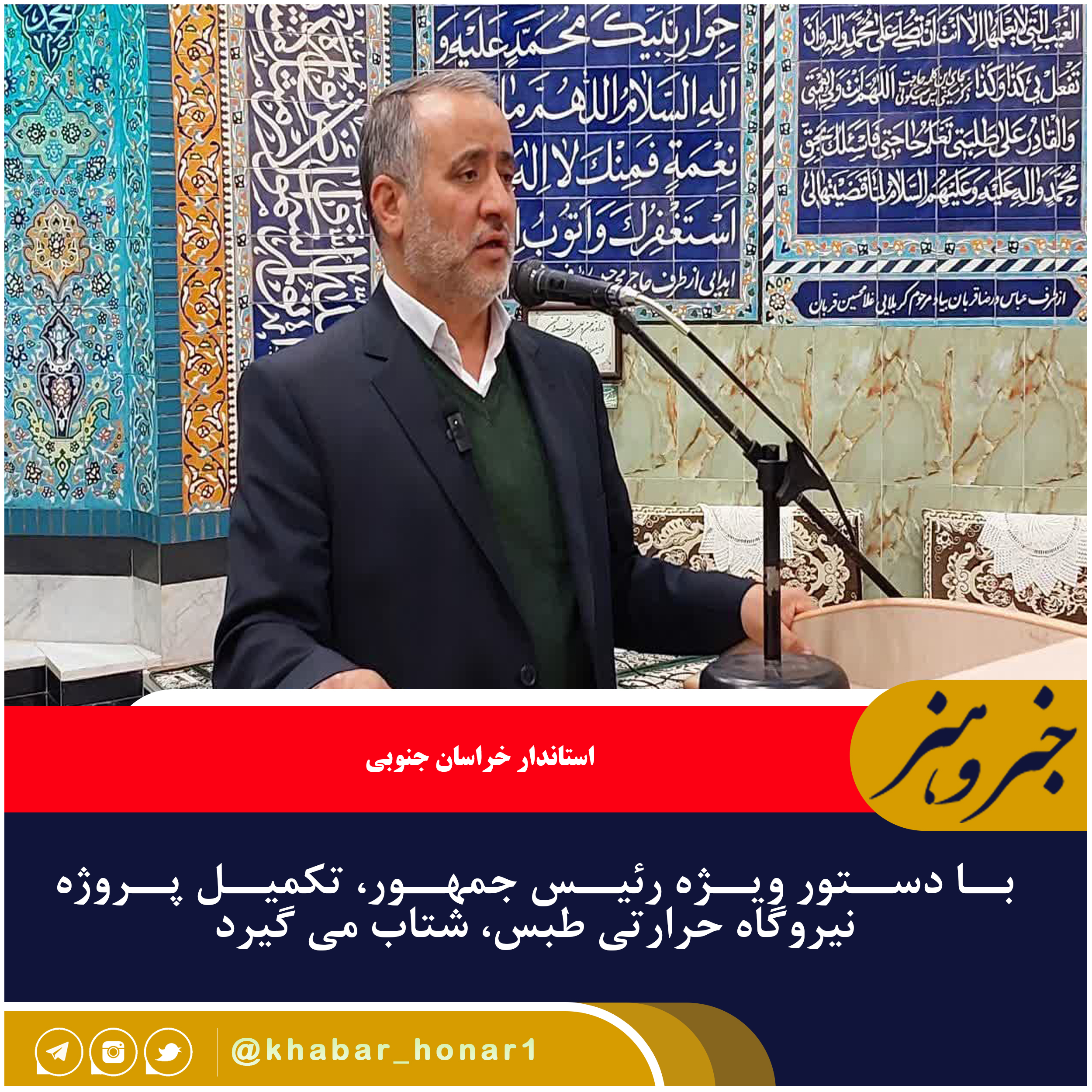 🔹استاندار خراسان جنوبی گفت: با دستور ویژه رئیس جمهور، تکمیل پروژه نیروگاه حرارتی طبس، شتاب می گیرد.
