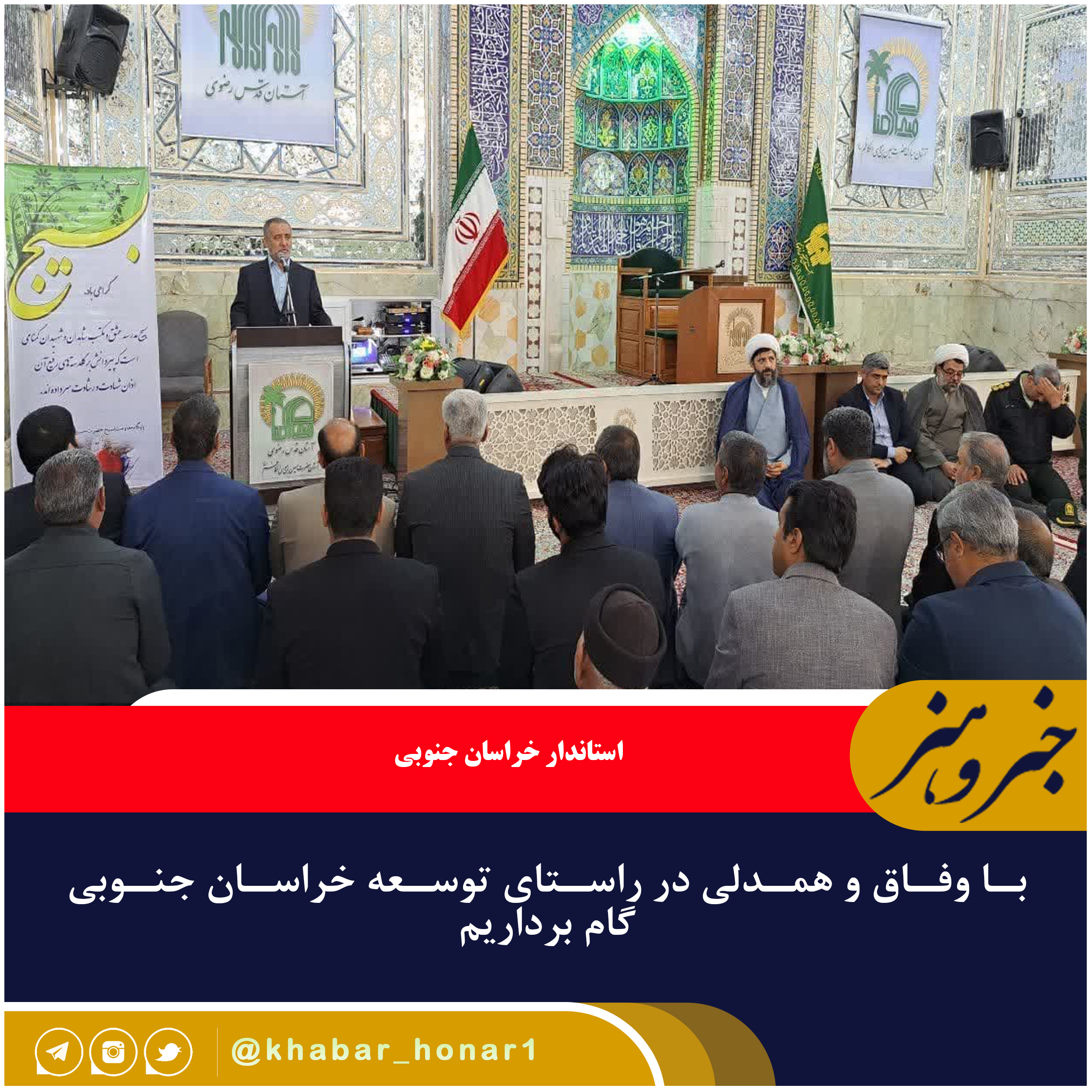 🔹استاندار خراسان جنوبی تأکید کرد: همه در کنار هم با همدلی و وفاق ملی و استانی در راستای توسعه خراسان جنوبی گام برداریم.