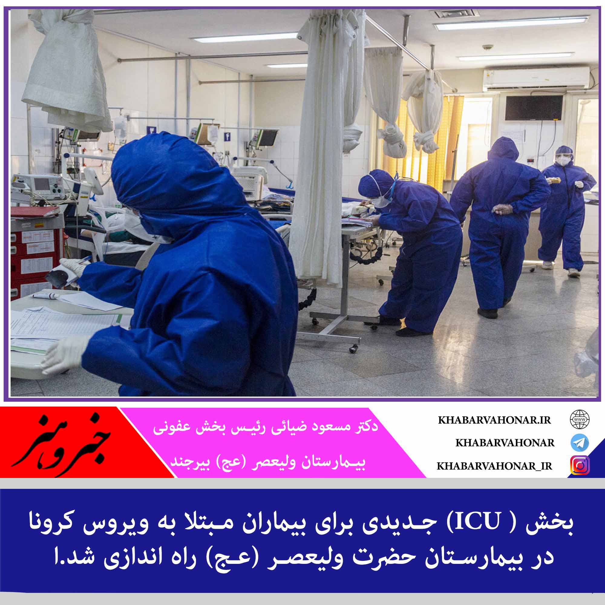 بخش ( ICU) جـدیدی برای بیماران مـبتلا به ویروس کرونا در بیمارسـتان حضرت ولیعصـر (عـج) راه اندازی شد.