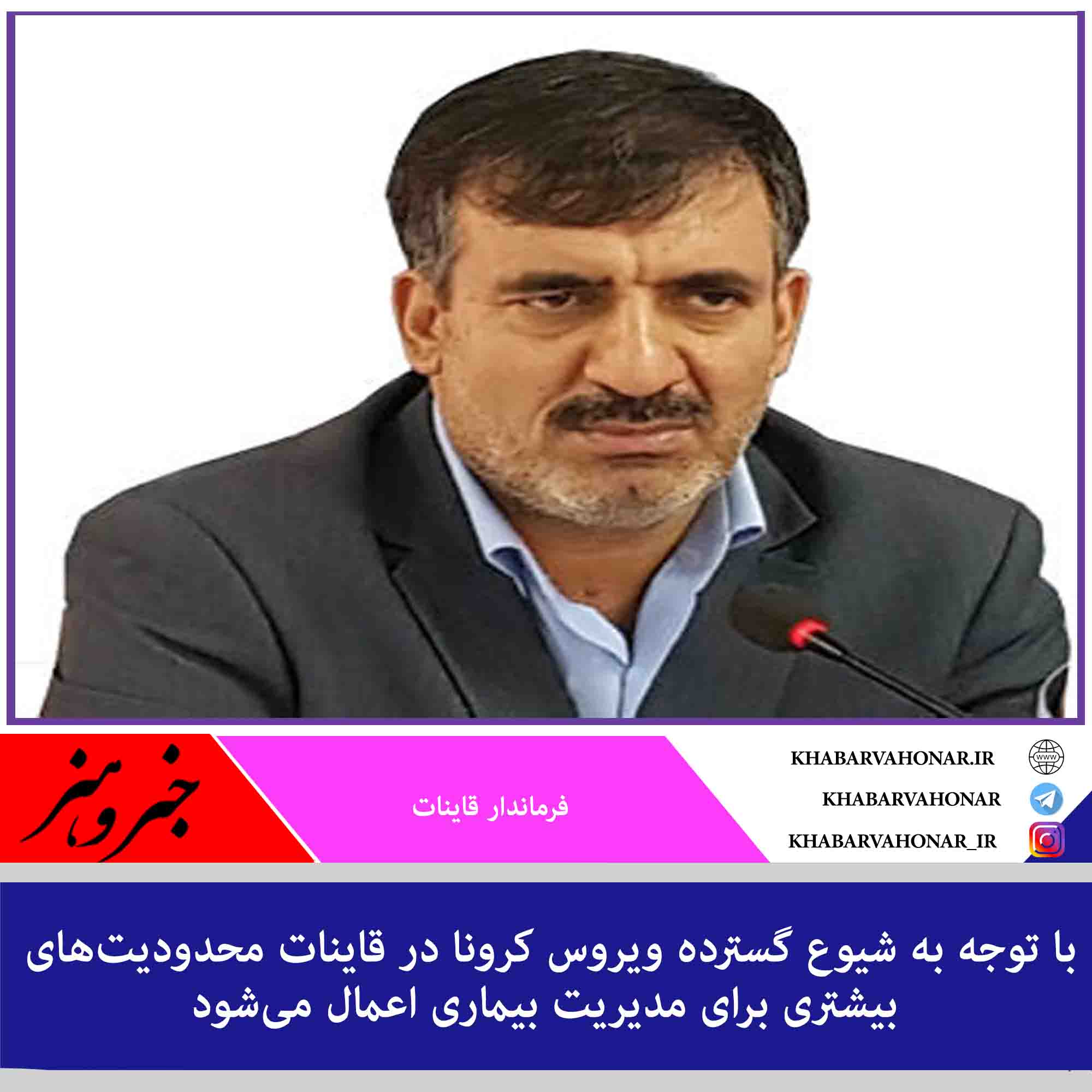 فرماندار قاینات گفت: با توجه به شیوع گسترده ویروس کرونا در این شهرستان محدودیتهای بیشتری برای مدیریت بیماری اعمال میشود.