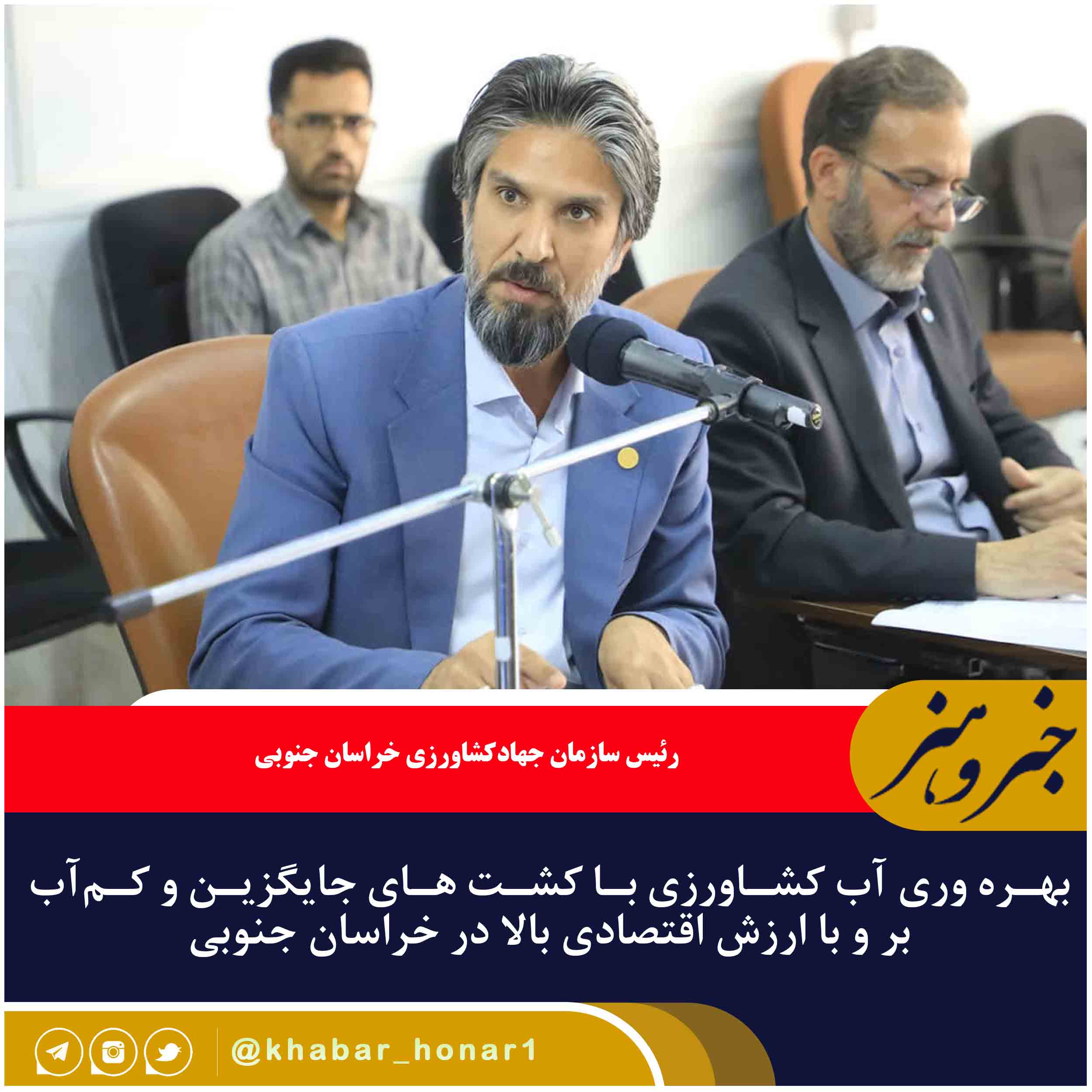 ، مهدی جعفری در دیدار با نماینده ولی فقیه استان با بیان اینکه سیاستهای کلی برای بهره وری آب در پیش گرفتیم، گفت: در الگوی کشت باغات خراسان جنوبی، کشت درختان کمآببر و با ارزش اقتصادی بالا یکی از سیاست های سازمان جهادکشاورزی استان است.