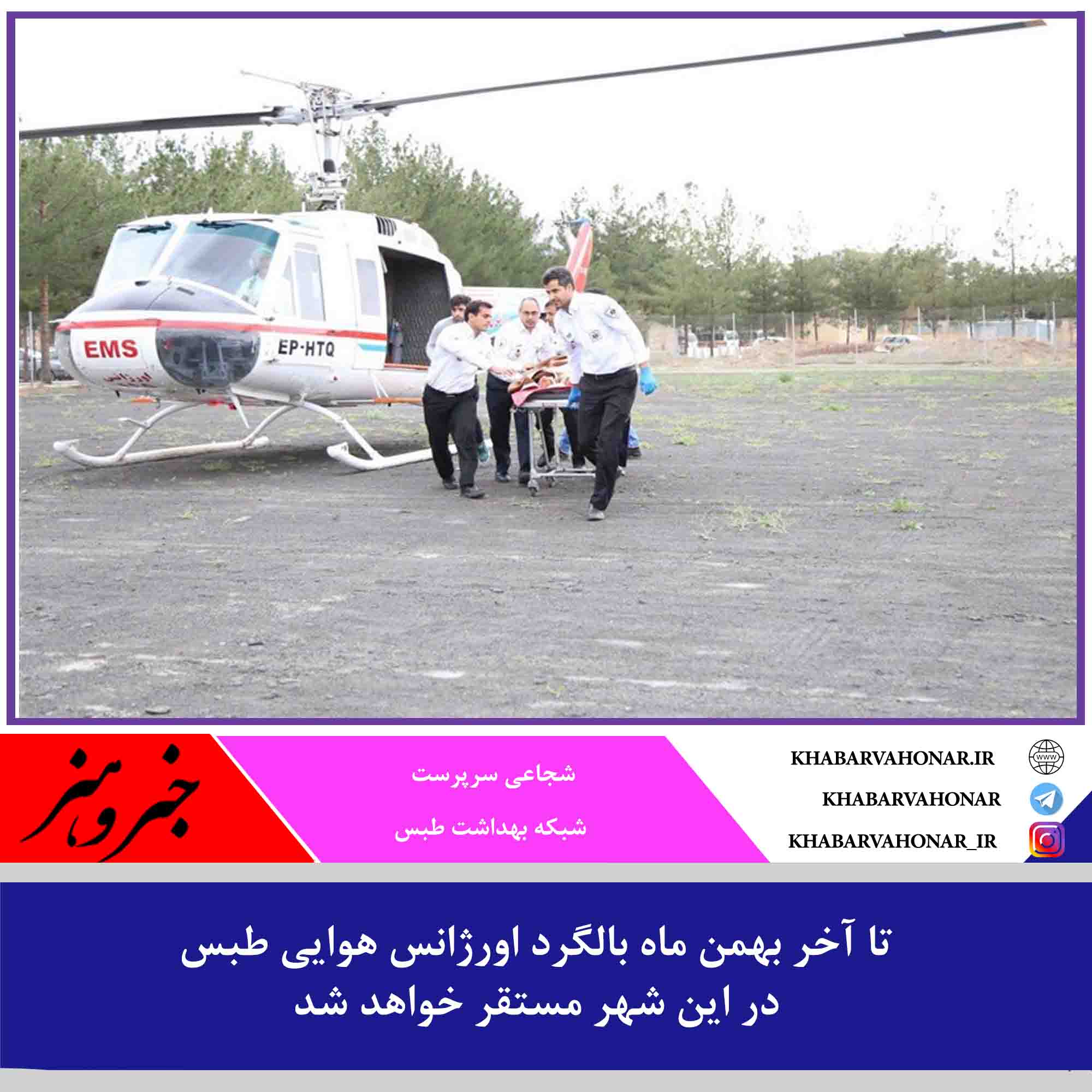 شجاعی سرپرست شبکه بهداشت طبس :تا آخر بهمن ماه بالگرد اورژانس هوایی طبس در این شهر مستقر خواهد شد