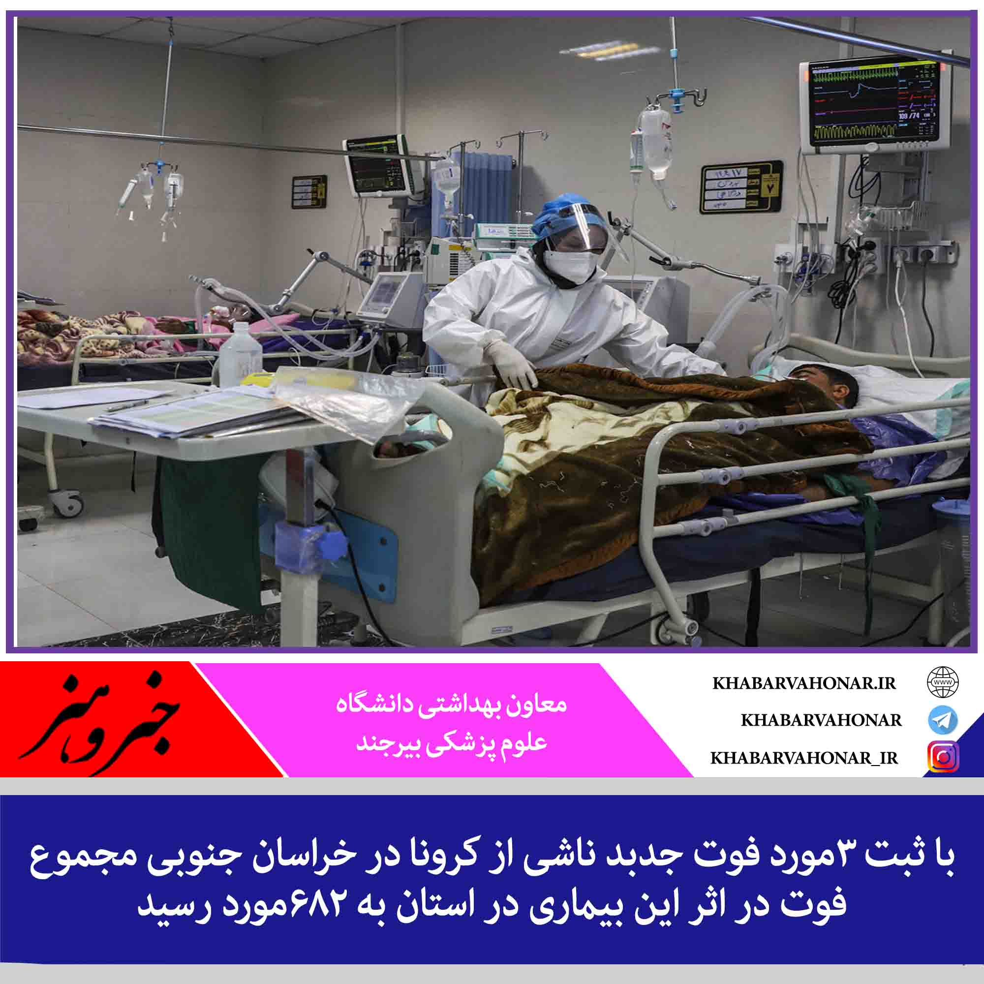 با ثبت ۳مورد فوت جدبد ناشی از کرونا در خراسان جنوبی مجموع فوت در اثر این بیماری در استان به ۶۸۲مورد رسید.