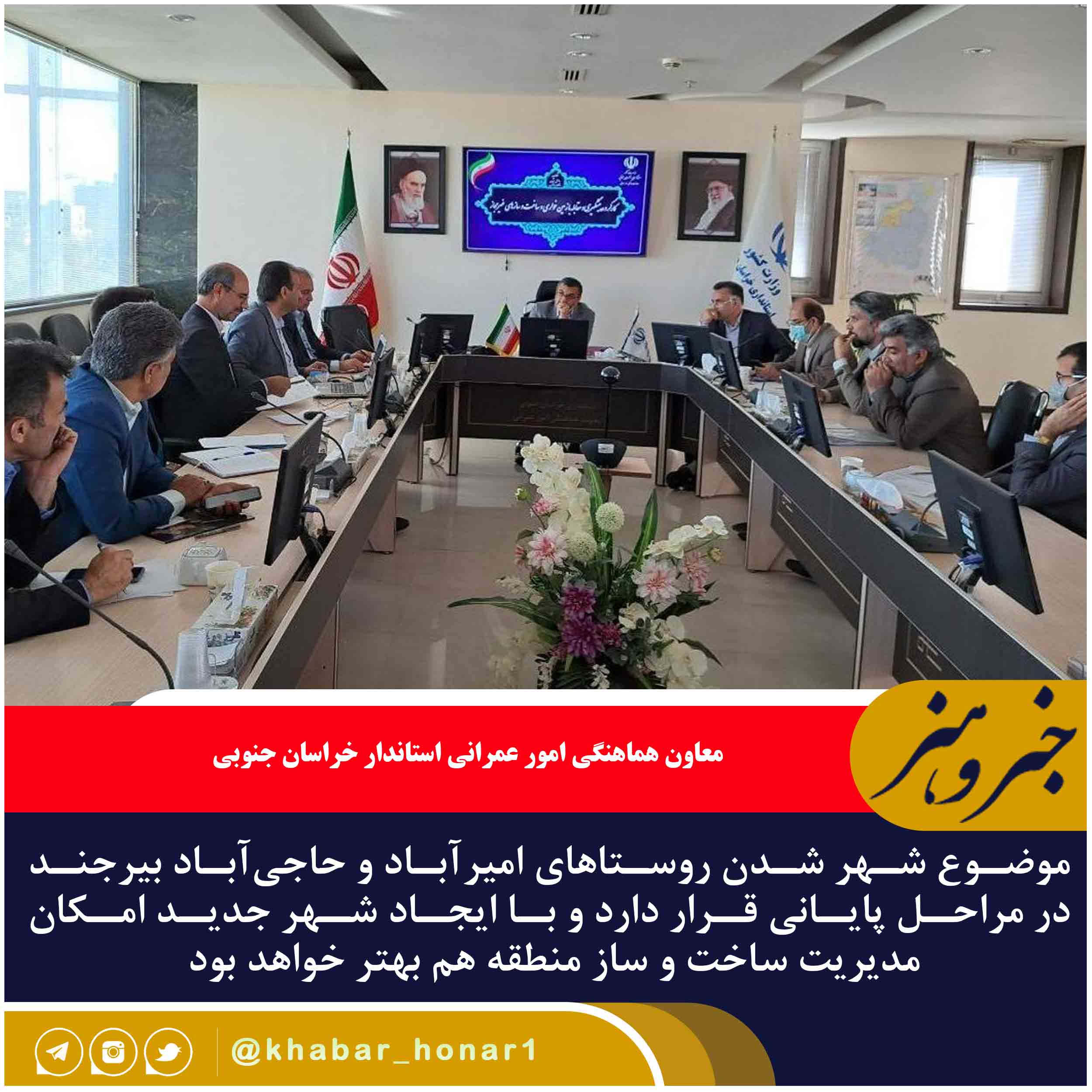 معاون هماهنگی امور عمرانی استاندار خراسان جنوبی گفت: موضوع شهر شدن روستاهای امیرآباد و حاجیآباد بیرجند در مراحل پایانی قرار دارد و با ایجاد شهر جدید امکان مدیریت ساخت و ساز منطقه هم بهتر خواهد بود.