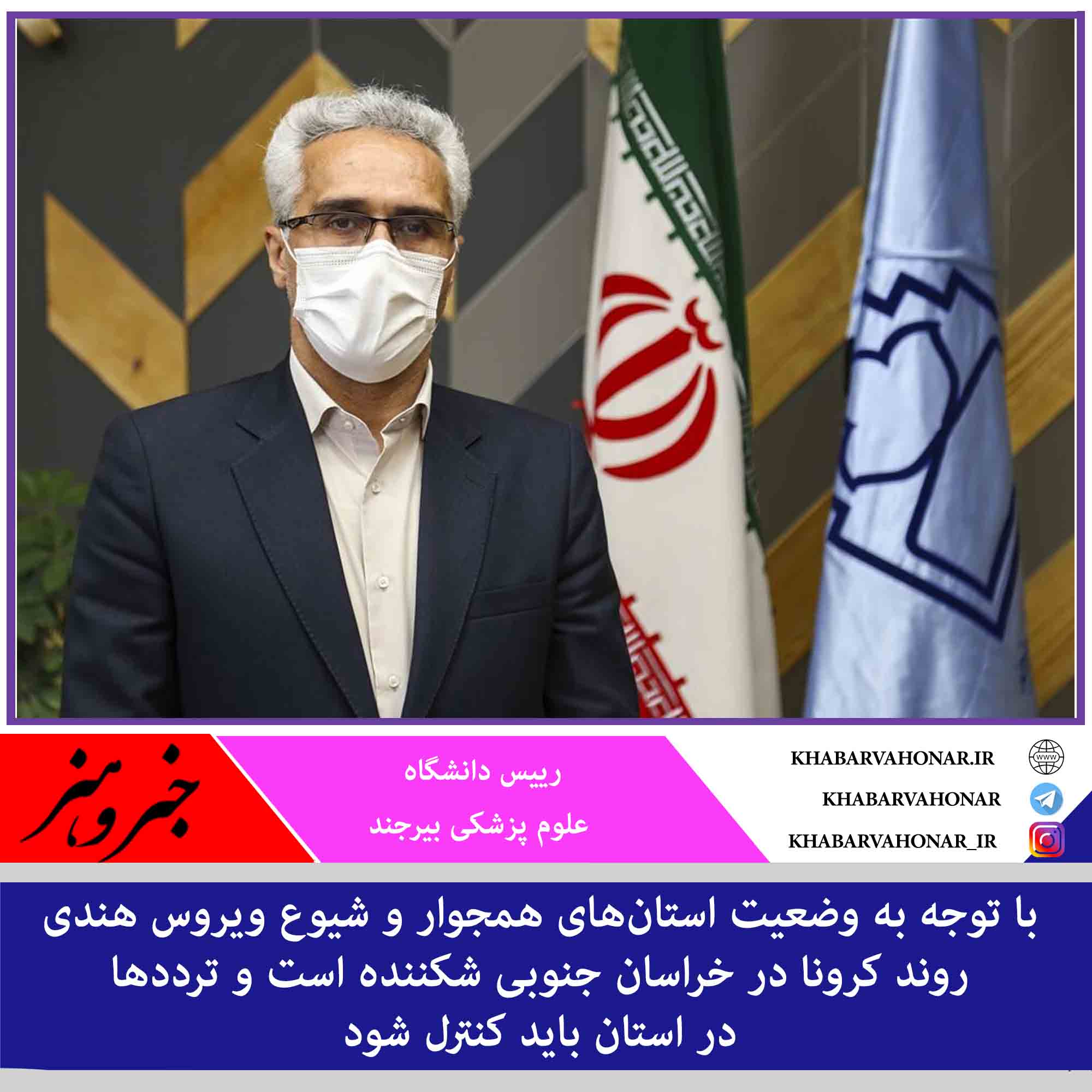 – رییس دانشگاه علوم پزشکی بیرجند گفت: با توجه به وضعیت استان‌های همجوار و شیوع ویروس هندی روند کرونا در خراسان جنوبی شکننده است و ترددها در این استان باید کنترل شود.