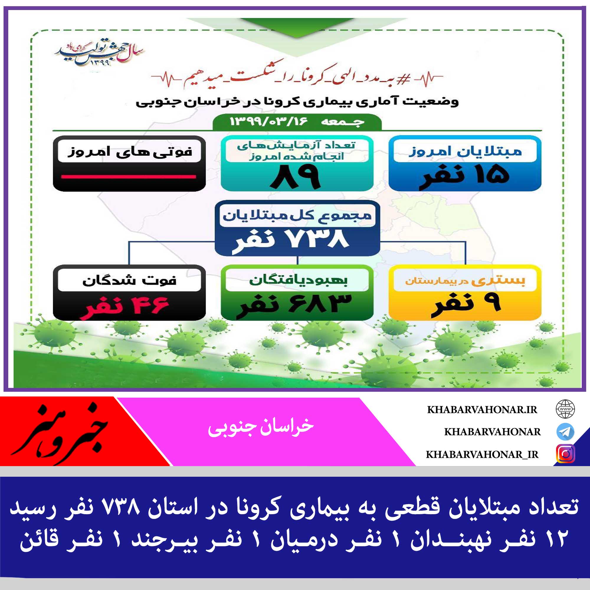 آخـرین وضعیـت آماری بیـماری ڪرونا در خـراسان جنـوبی
