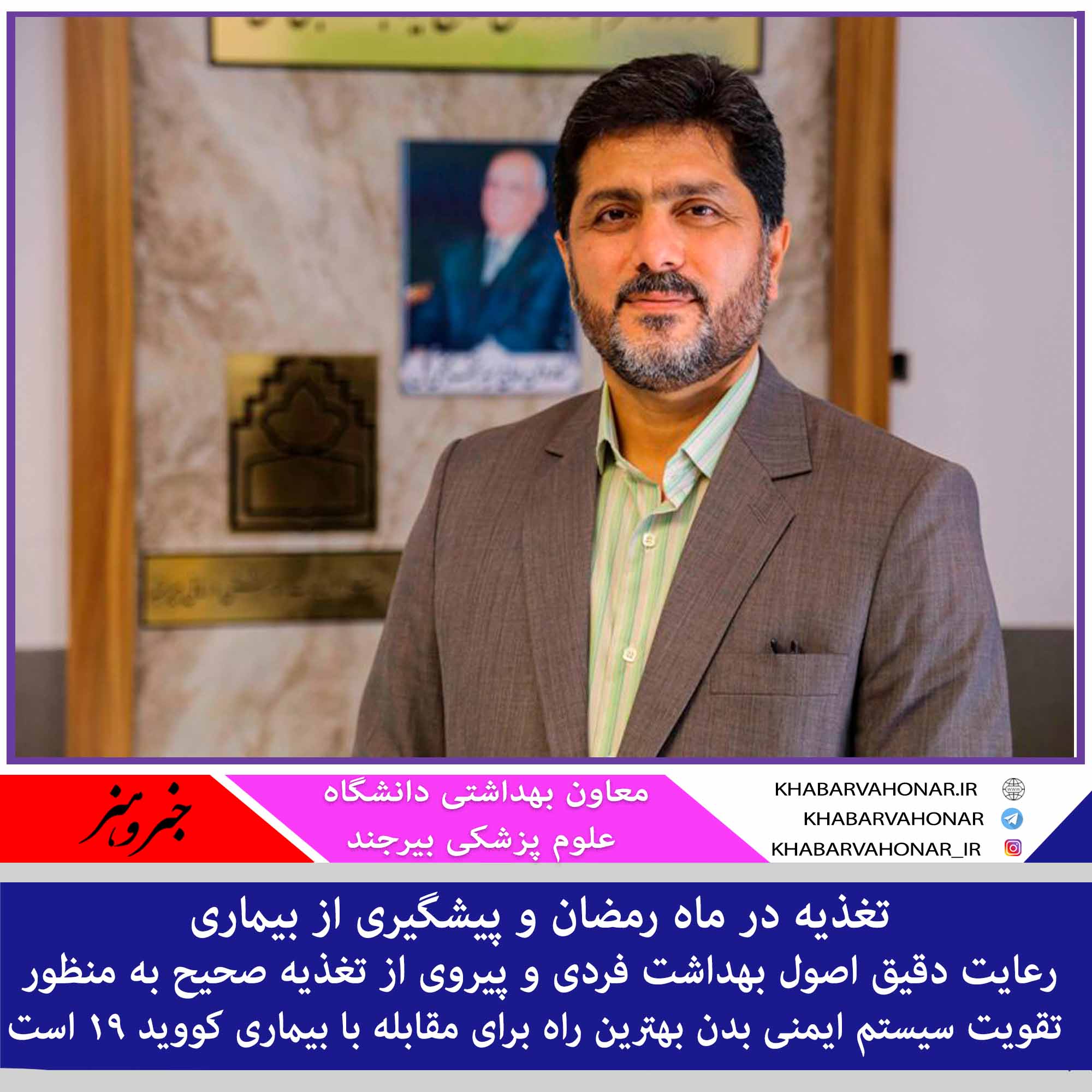 معاونت بهداشتی دانشگاه علوم پزشکی بیرجند بر ضرورت رعایت برخی نکات تغذیهای در ماه رمضان برای حفظ و ارتقای سلامت اعضای خانواده و پیشگیری از بیماری تاکید کرد.