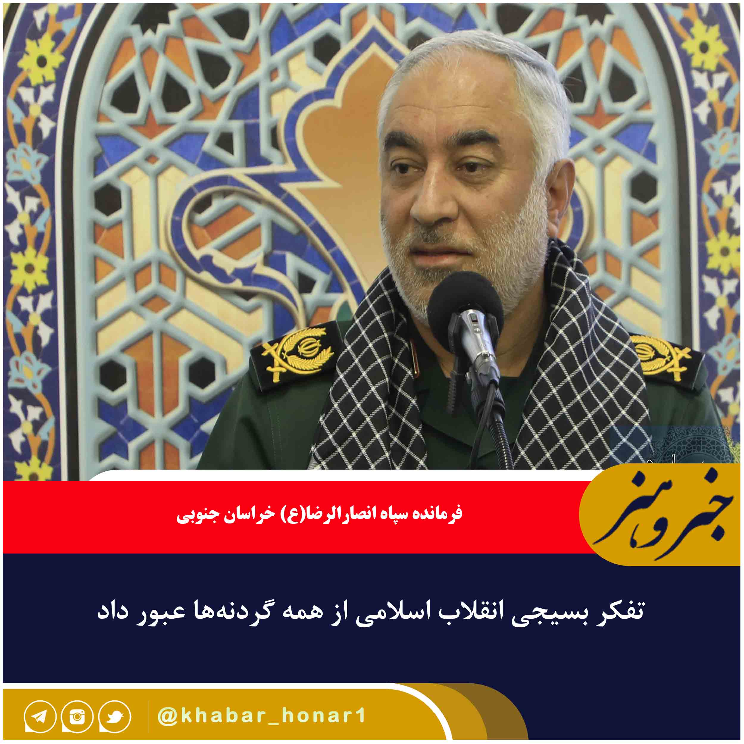 فرمانده سپاه انصار الرضا (ع) خراسان جنوبی یادآور شد: تفکر بسیجی که در ۵ آذر ۵۸ بنیان گذاشته شد امروزه در غزه، لبنان، سوریه و یمن و … تکثیر شده و زمینه مقاومت جبهه حق را فراهم کرده است.
