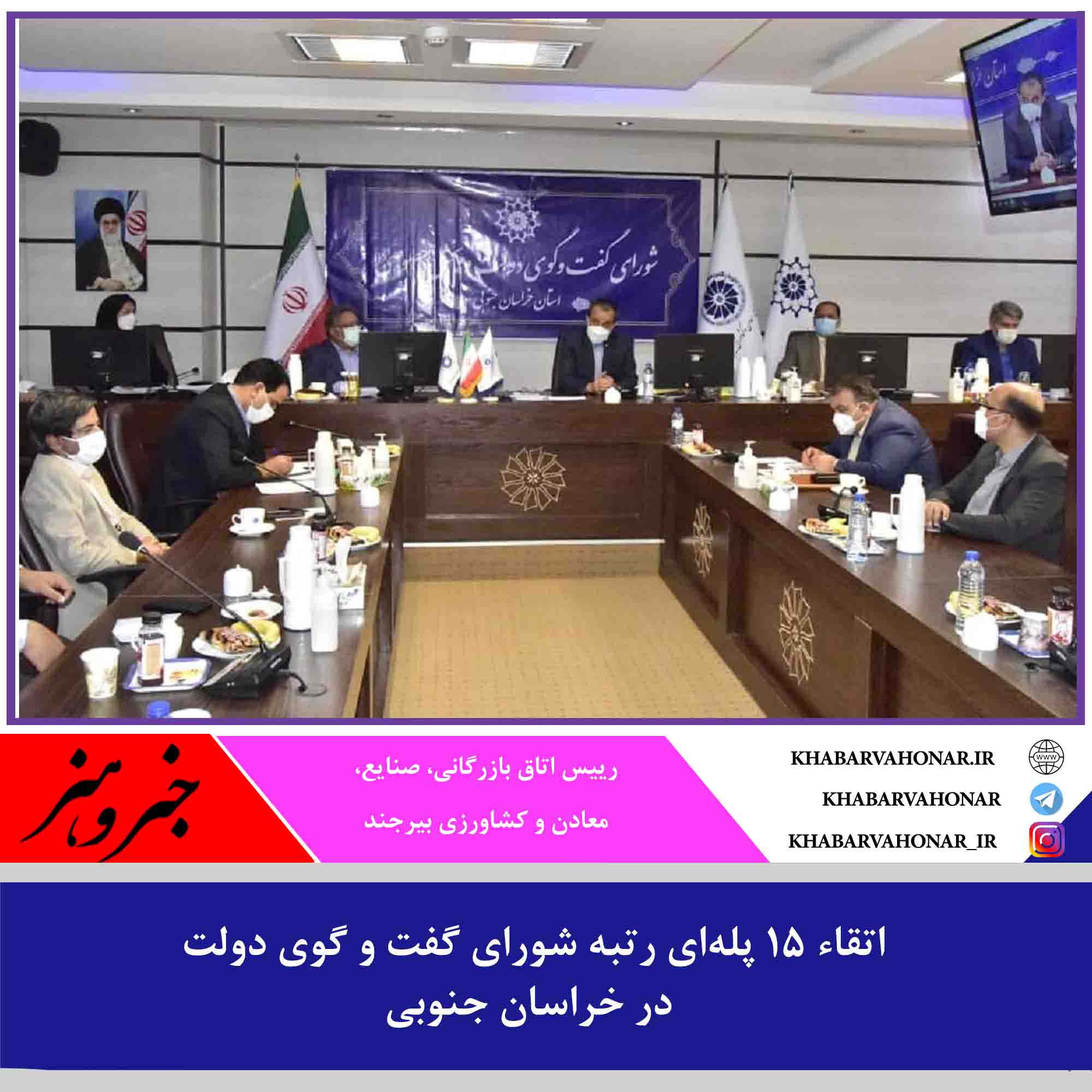 رییس اتاق بازرگانی، صنایع، معادن و کشاورزی بیرجند از ارتقاء رتبه شورای گفت و گوی استان خراسان جنوبی از ۲۴ به ۹ در ۶ ماه نخست نسبت به کل سال گذشته خبر داد و گفت: این ارتقاء ۱۵ پلهای مرهون تعامل بیشتر بخش خصوصی و دولتی است.