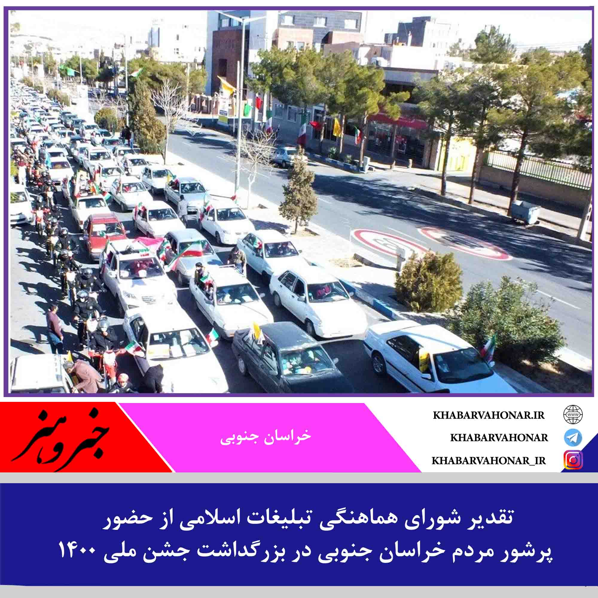 ستاد دهه فجر شورای هماهنگی تبلیغات اسلامی خراسان جنوبی با صدور اطلاعیهای از حضور پر شور مردم در بزرگداشت جشن ملی ۱۴۰۰ تقدیر و تشکر کرد.