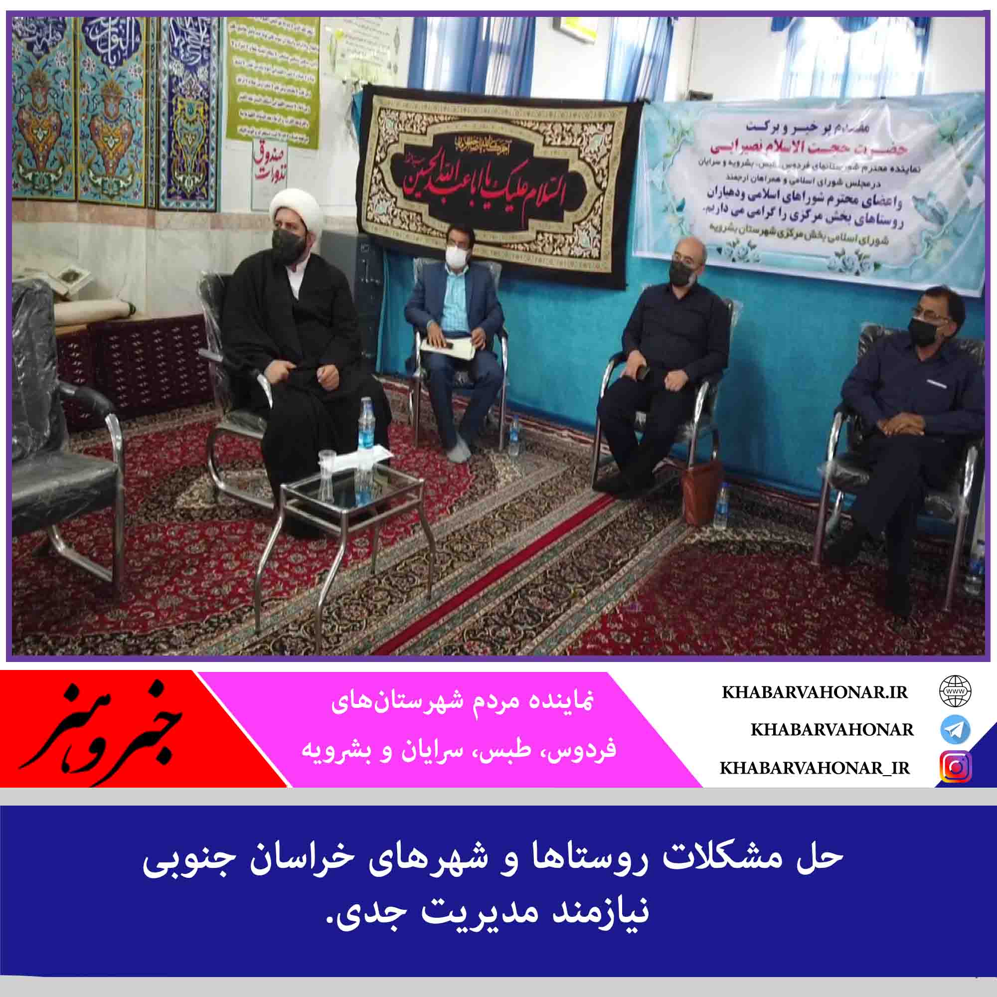 نماینده مردم شهرستانهای فردوس، طبس، سرایان و بشرویه در مجلس شورای اسلامی حل مشکلات روستاها و شهرهای خراسان جنوبی را نیازمند مدیریت جدی دانست.