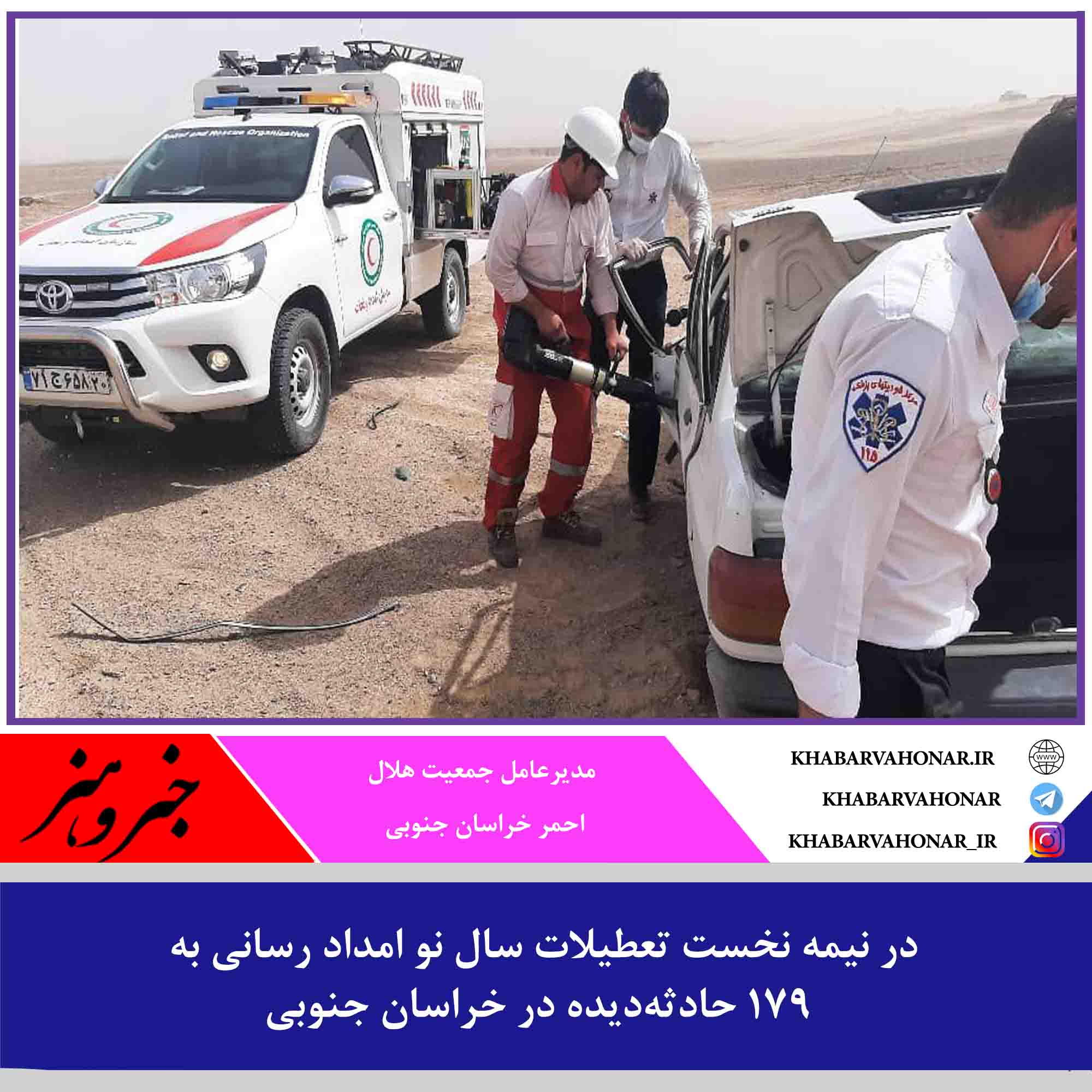 امدادگران جمعیت هلال احمر خراسان جنوبی در نیمه نخست تعطیلات سال نو ۱۷۹ مصدوم و حادثه دیده را نجات دادند.