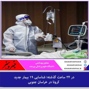 ?معاون بهداشتی دانشگاه علوم پزشکی بیرجند با بیان اینکه در شبانه روز گذشته ۱۱۰ آزمایش کرونا در استان انجام شد که ۲۰ آزمایش، مثبت قطعی اعلام شد، گفت: از این تعداد مبتلای جدید به کرونا، یک نفر در بیمارستانها بستری اند و ۱۹ نفر نیز نمونه گیری سرپایی شدند.