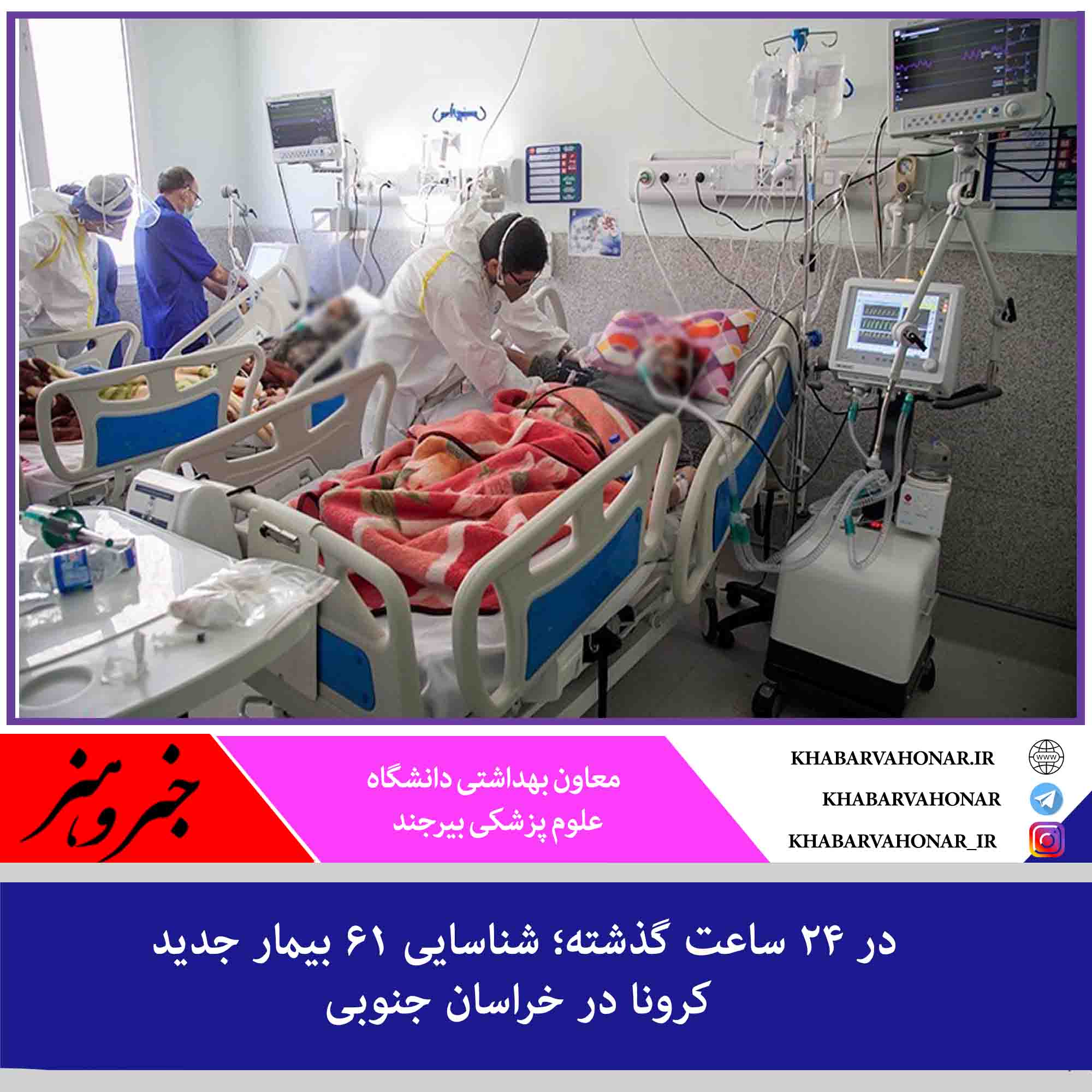 ?معاون بهداشتی دانشگاه علوم پزشکی بیرجند با بیان اینکه در شبانه روز گذشته ۲۰۴ آزمایش کرونا در استان انجام شد که ۶۱ آزمایش، مثبت قطعی اعلام شد، گفت: از این تعداد مبتلای جدید به کرونا، ۱۰ نفر در بیمارستانها بستری اند و ۵۱ نفر نیز نمونه گیری سرپایی شدند.