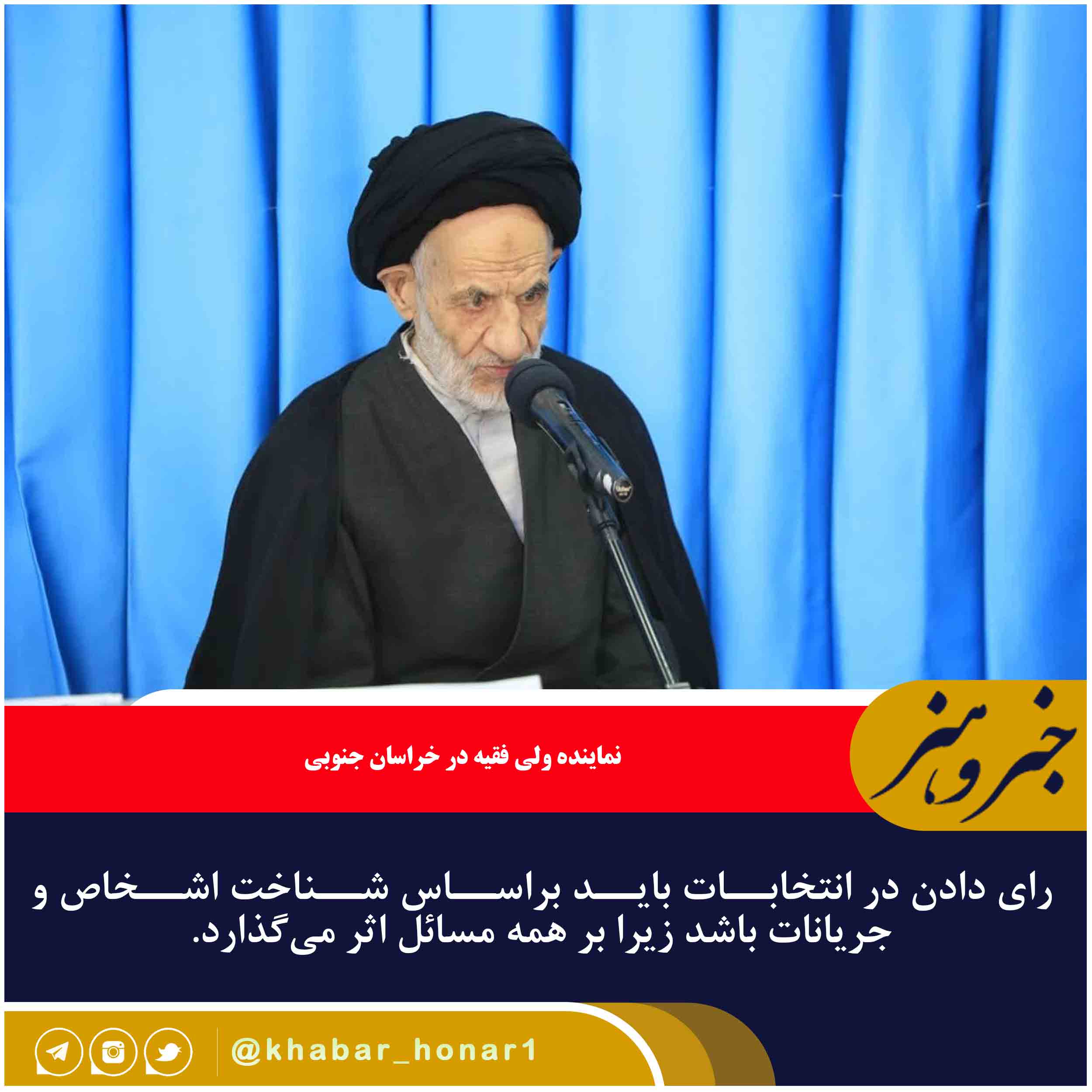 نماینده ولی فقیه در خراسان جنوبی و امام جمعه بیرجند گفت: رای دادن در انتخابات باید براساس شناخت اشخاص و جریانات باشد زیرا بر همه مسائل اثر میگذارد.