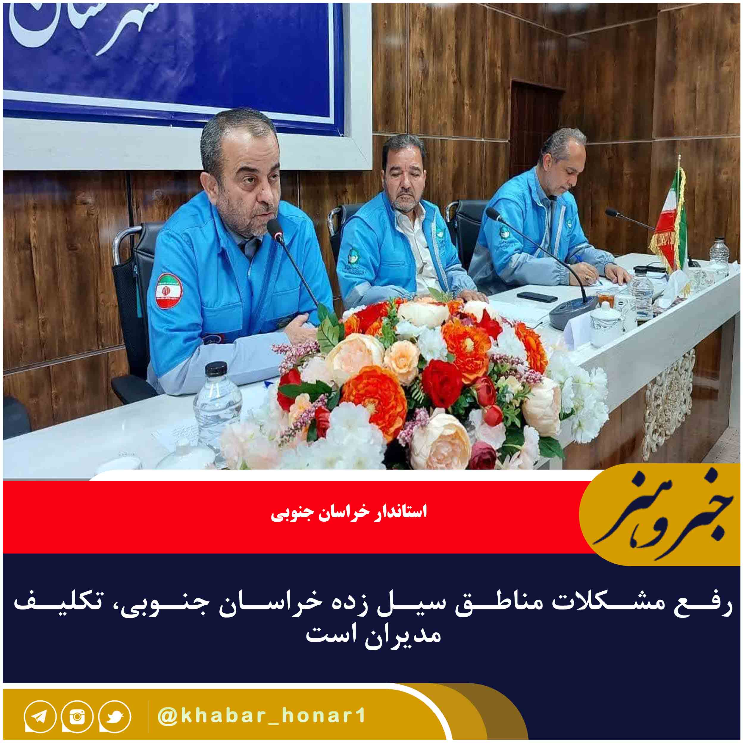 ?استاندار خراسان جنوبی گفت : رفع مشکلات مناطق سیل زده در اولویت برنامه ها و تکلیف مدیران است.