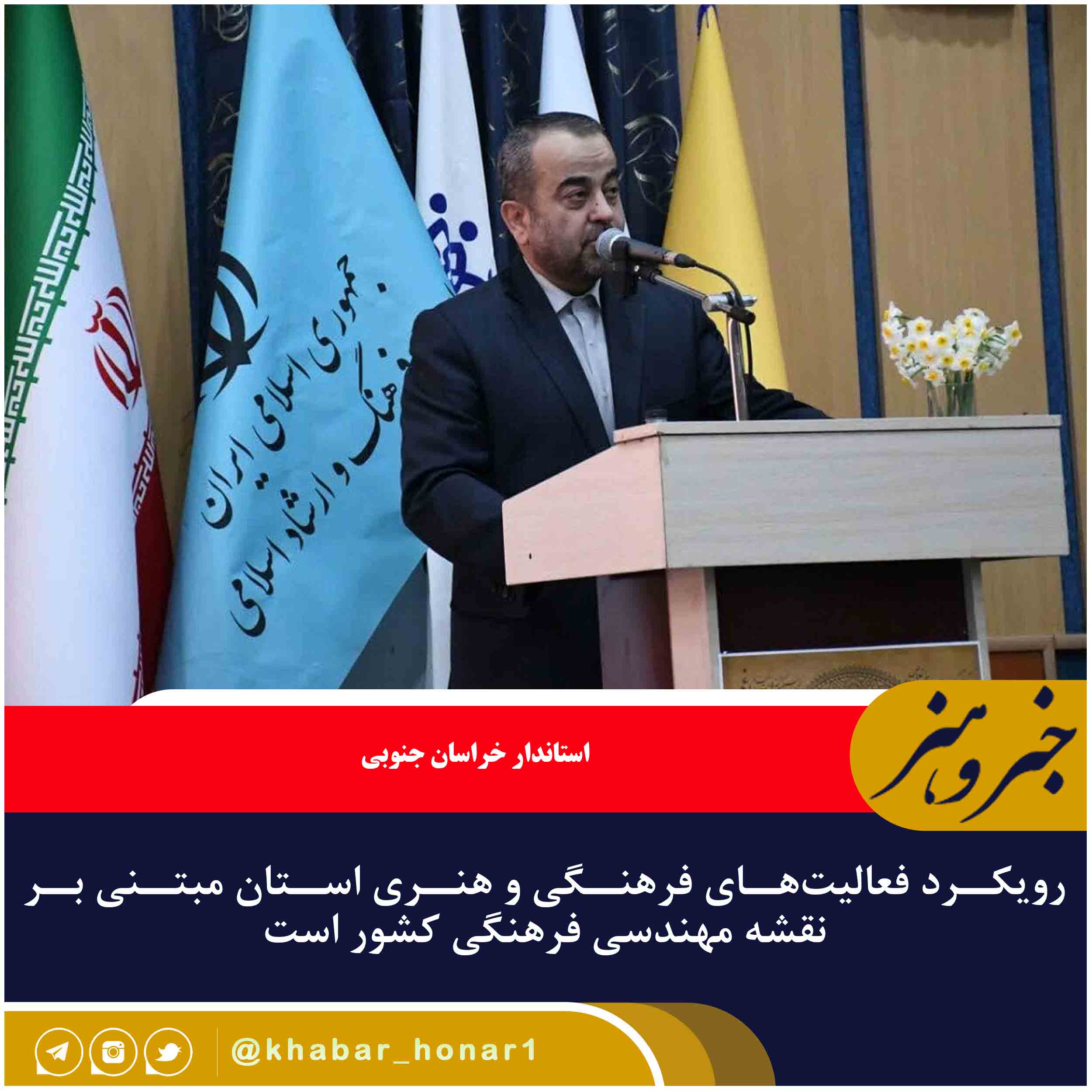 استاندار خراسان جنوبی با بیان اینکه رویکرد فعالیت‌های فرهنگی و هنری استان مبتنی بر نقشه مهندسی فرهنگی کشور است اظهار کرد: در این نقشه مهندسی نسبت به توجه به مفاخر و مشاهیر، توجه به سبک زندگی اصیل ایرانی اسلامی، توجه به مد و لباس و گویش‌ها به ویژه توجه به زبان فارسی تاکید شده است.