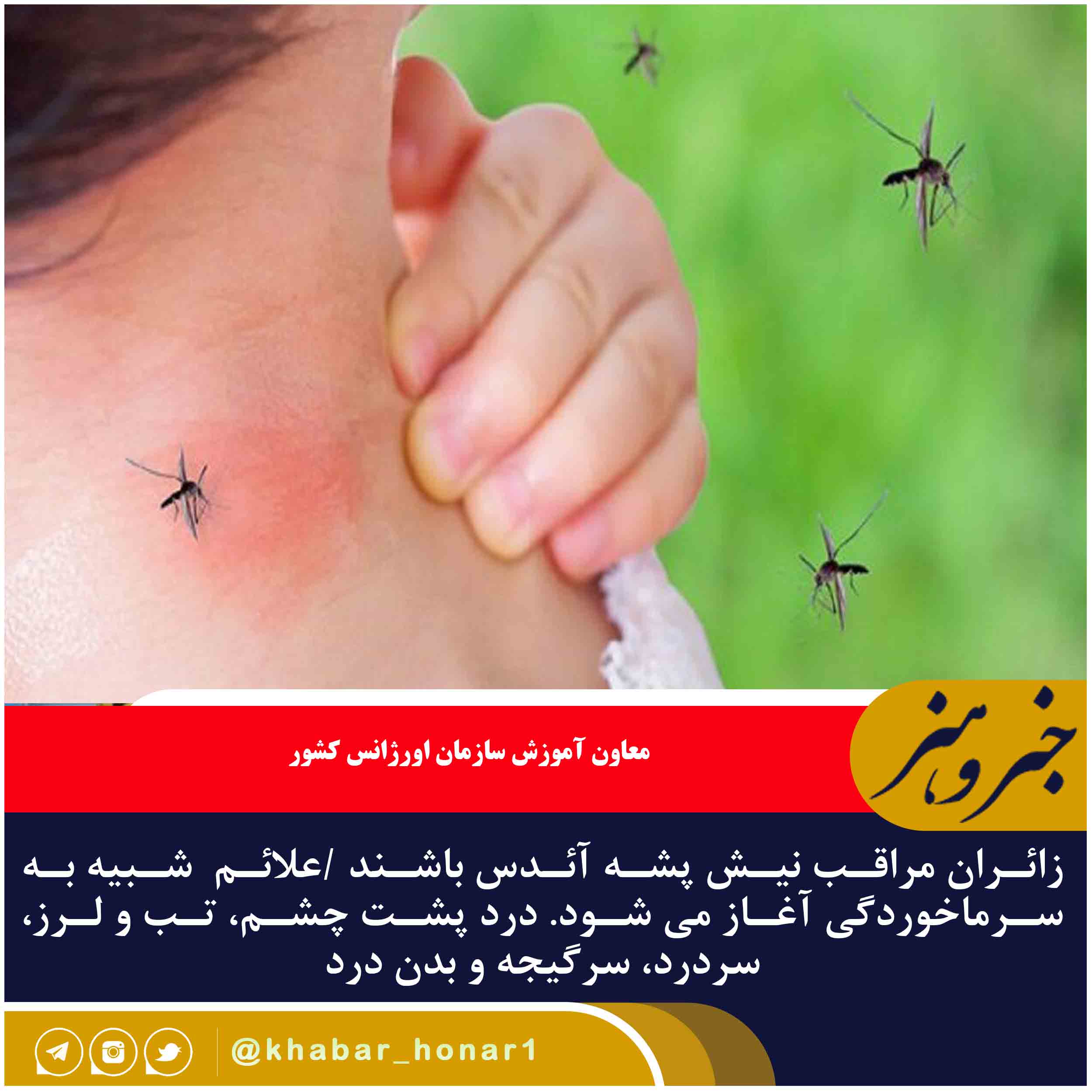 معاون آموزش سازمان اورژانس کشور با تأکید بر اهمیت پیشگیری از گزش پشه آئدس و انتقال بیماری تب دنگی، زائران را به رعایت نکات ایمنی از جمله استفاده از لباسهای آستین بلند و جوراب، به ویژه در ساعات ابتدایی صبح و ساعات نزدیک به غروب، توصیه کرد.